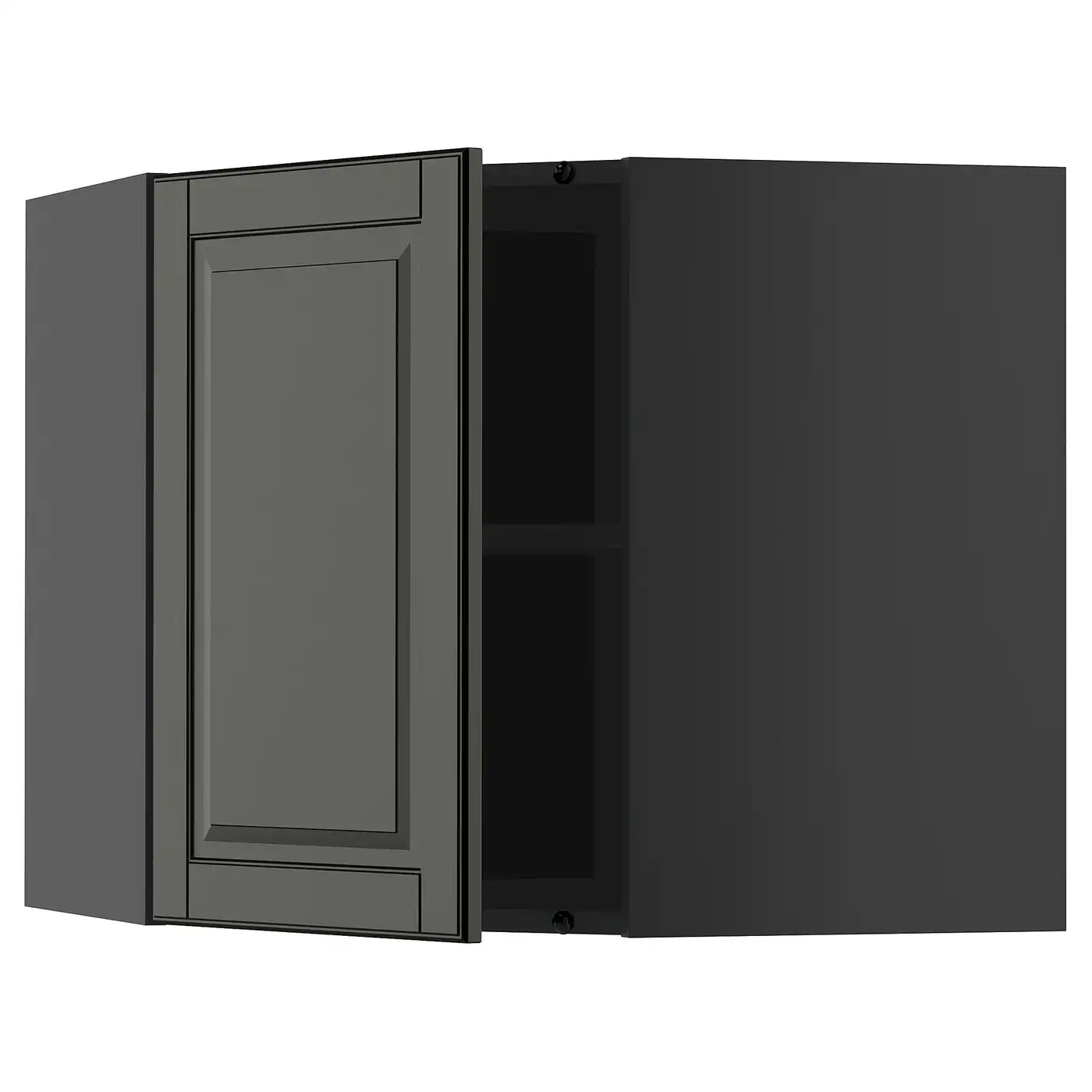 IKEA METOD Corner wall cabinet with shelves 68x60 cm BODBYN black/black-grey