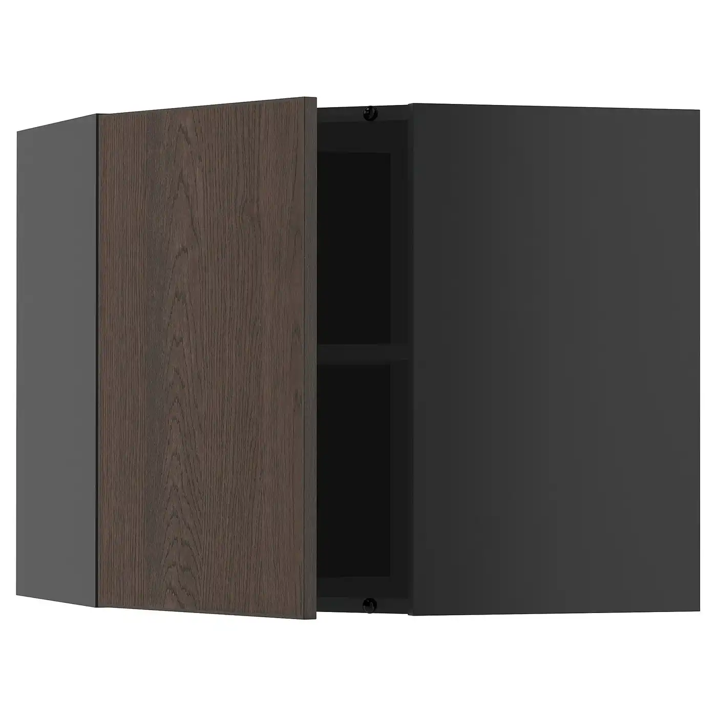 IKEA METOD Corner wall cabinet with shelves 68x60 cm SINARP black-grey/brown