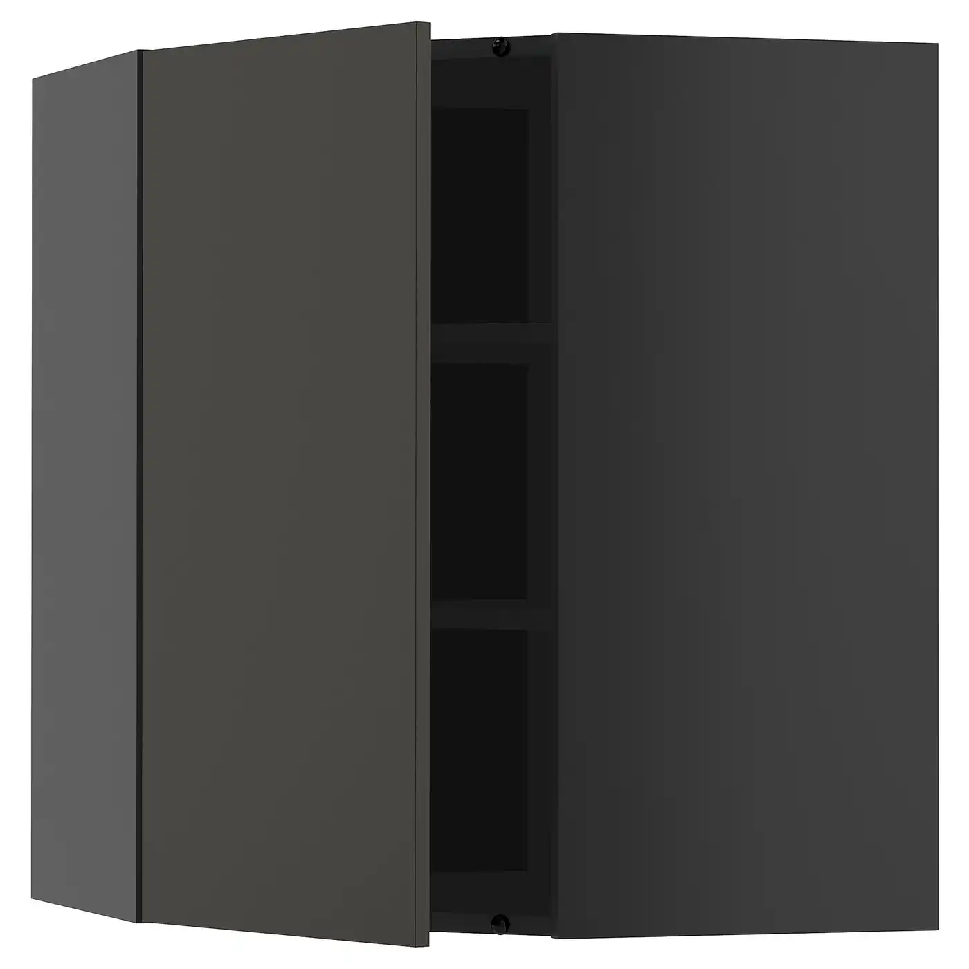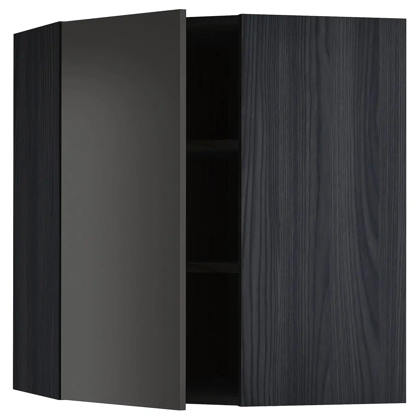 METOD Corner wall cabinet with shelves - black/Nickebo matt anthracite 68x80 cm