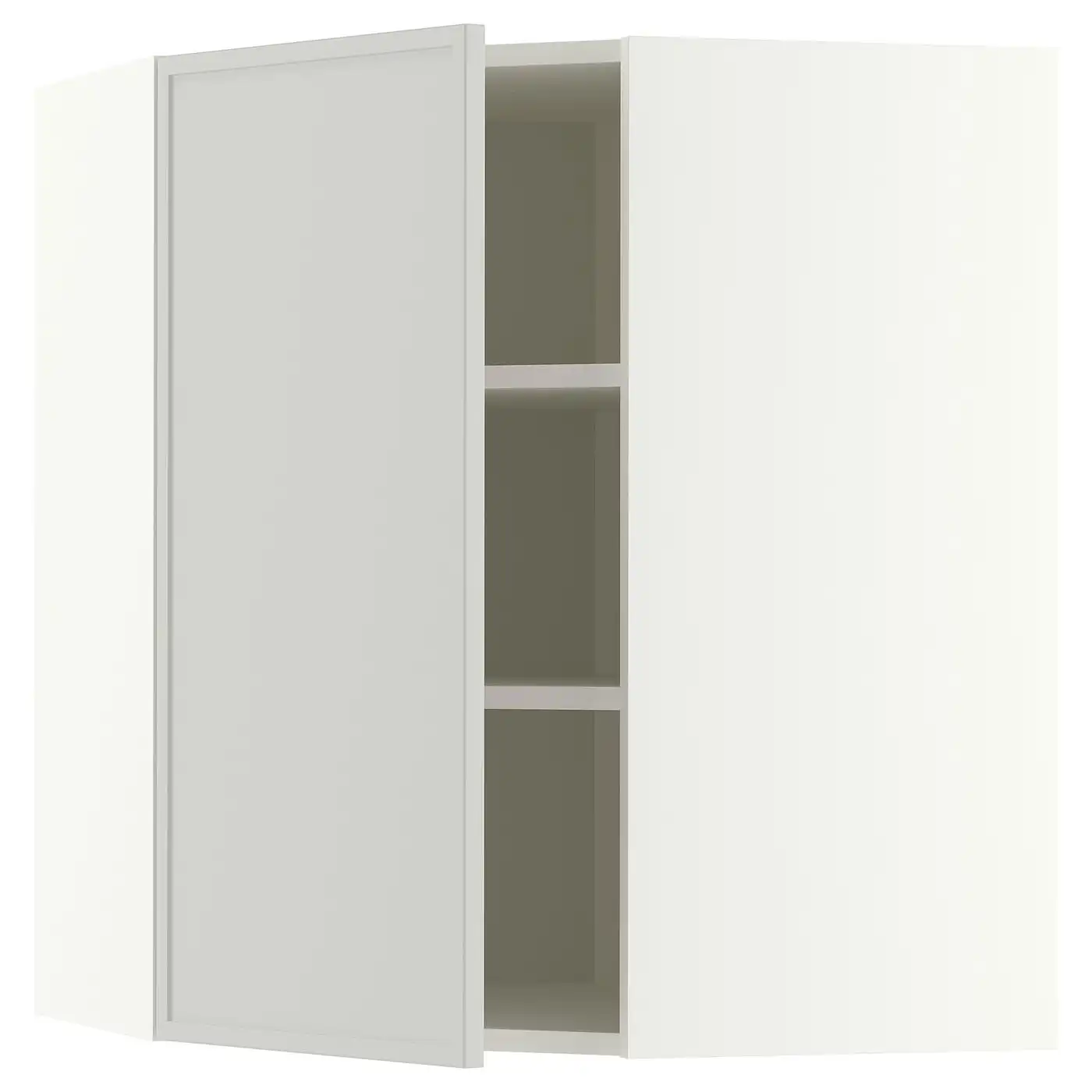 IKEA METOD Corner wall cabinet with shelves 68x80 cm ASPUDDEN white/light grey