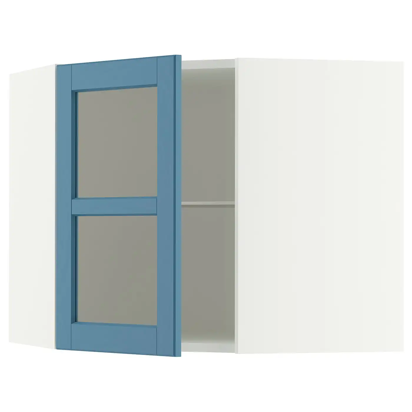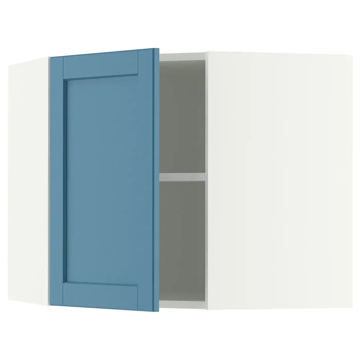METOD Corner wall cabinet with shelves - white/Lerhyttan blue 68x60 cm