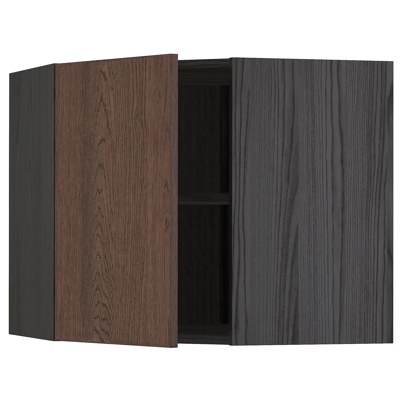 METOD Corner wall cabinet with shelves - white/Sinarp brown 68x60 cm