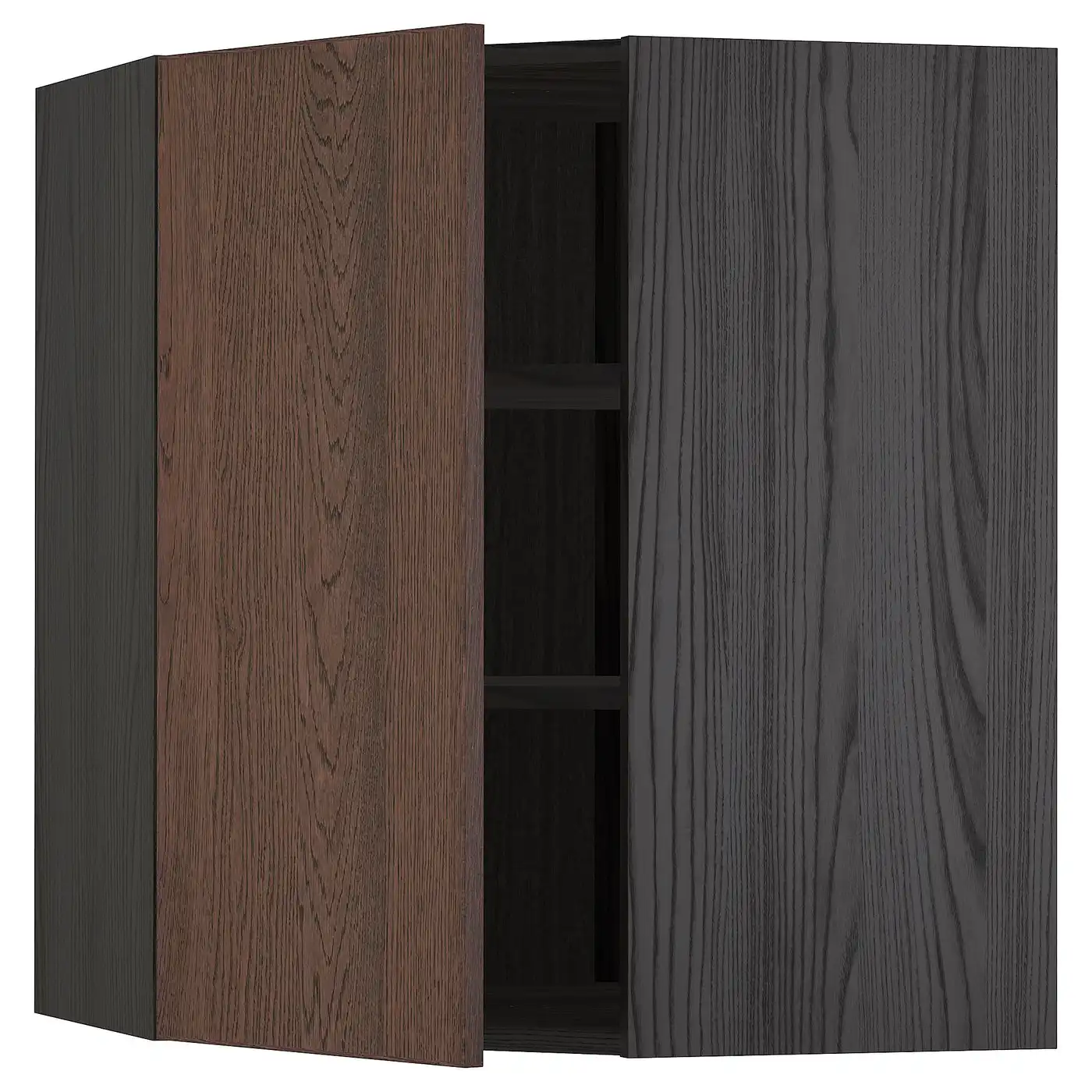 METOD Corner wall cabinet with shelves - white/Sinarp brown 68x80 cm