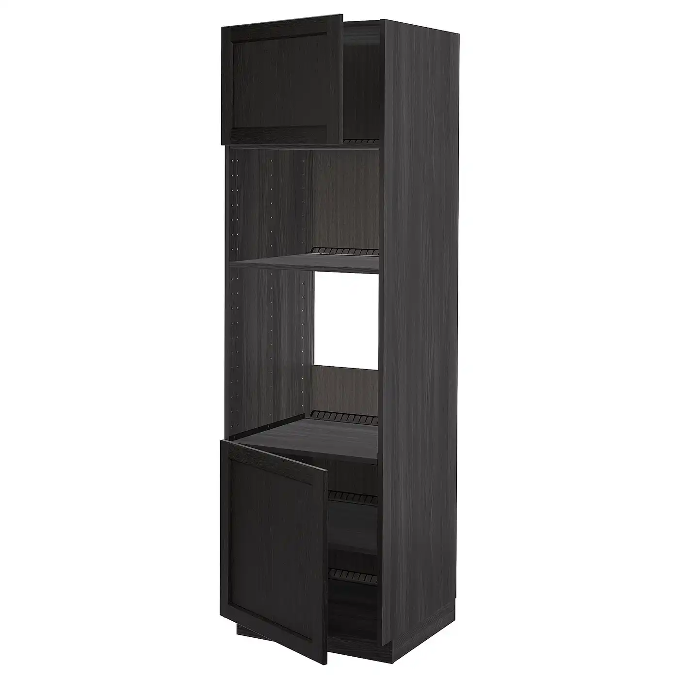 IKEA METOD High cabinet for oven with 2 doors/shelves 60x60x200 cm black/LERHYTTAN black stained