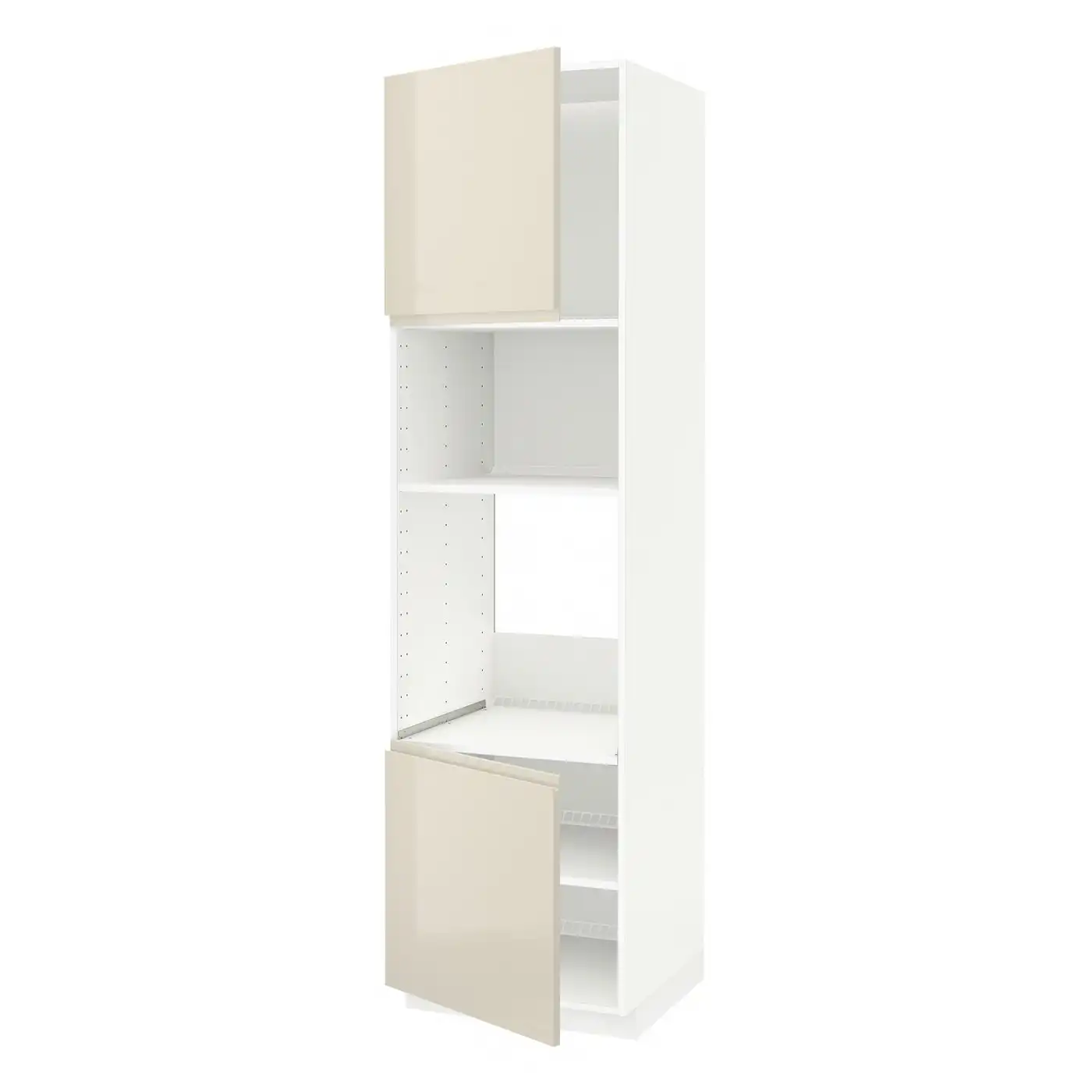 METOD Hi cb f oven/micro w 2 drs/shelves - white/Voxtorp high-gloss light beige 60x60x220 cm