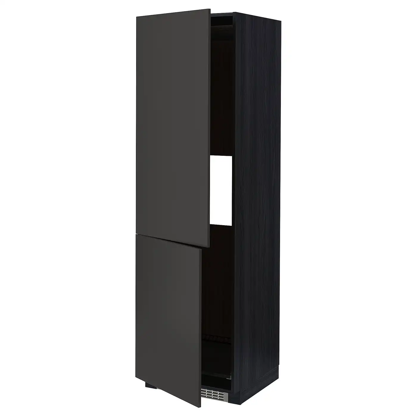 METOD Hi cab f fridge or freezer w 2 drs - black/Nickebo matt anthracite 60x60x200 cm