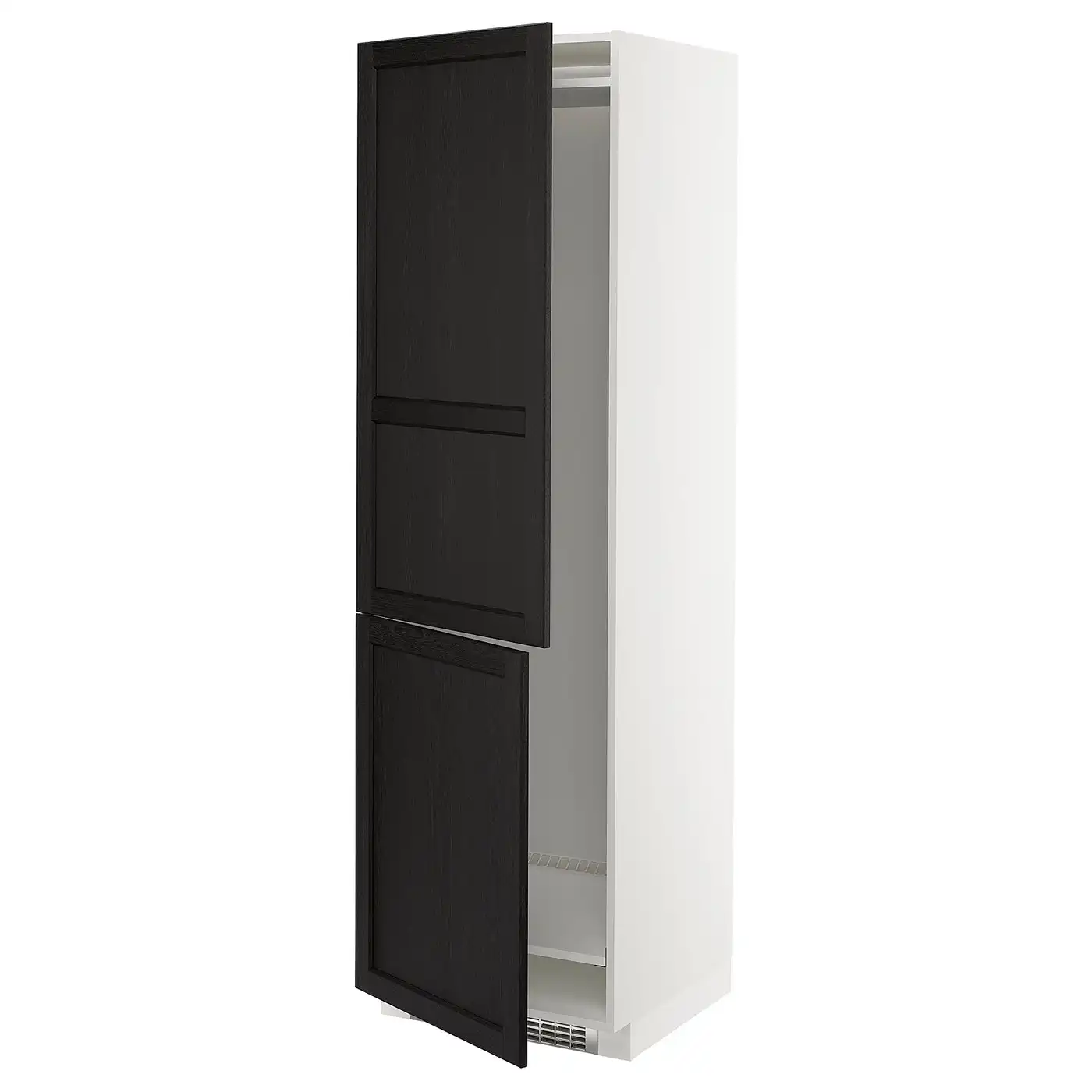 METOD Hi cab f fridge or freezer w 2 drs - white/Lerhyttan black stained 60x60x200 cm