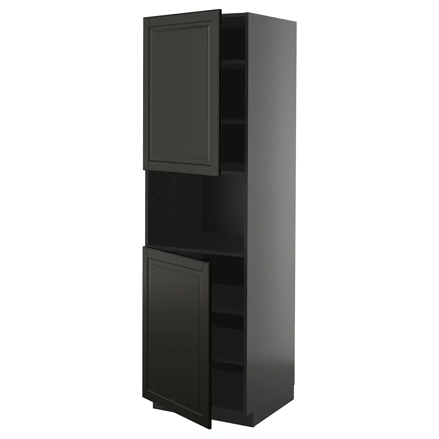 METOD High cab f micro w 2 doors/shelves - black-grey/Bodbyn black 60x60x200 cm