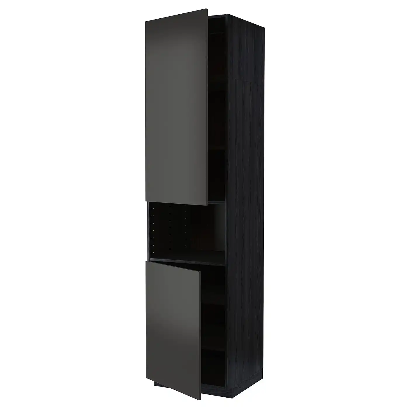 METOD High cab f micro w 2 doors/shelves - black/Nickebo matt anthracite 60x60x240 cm