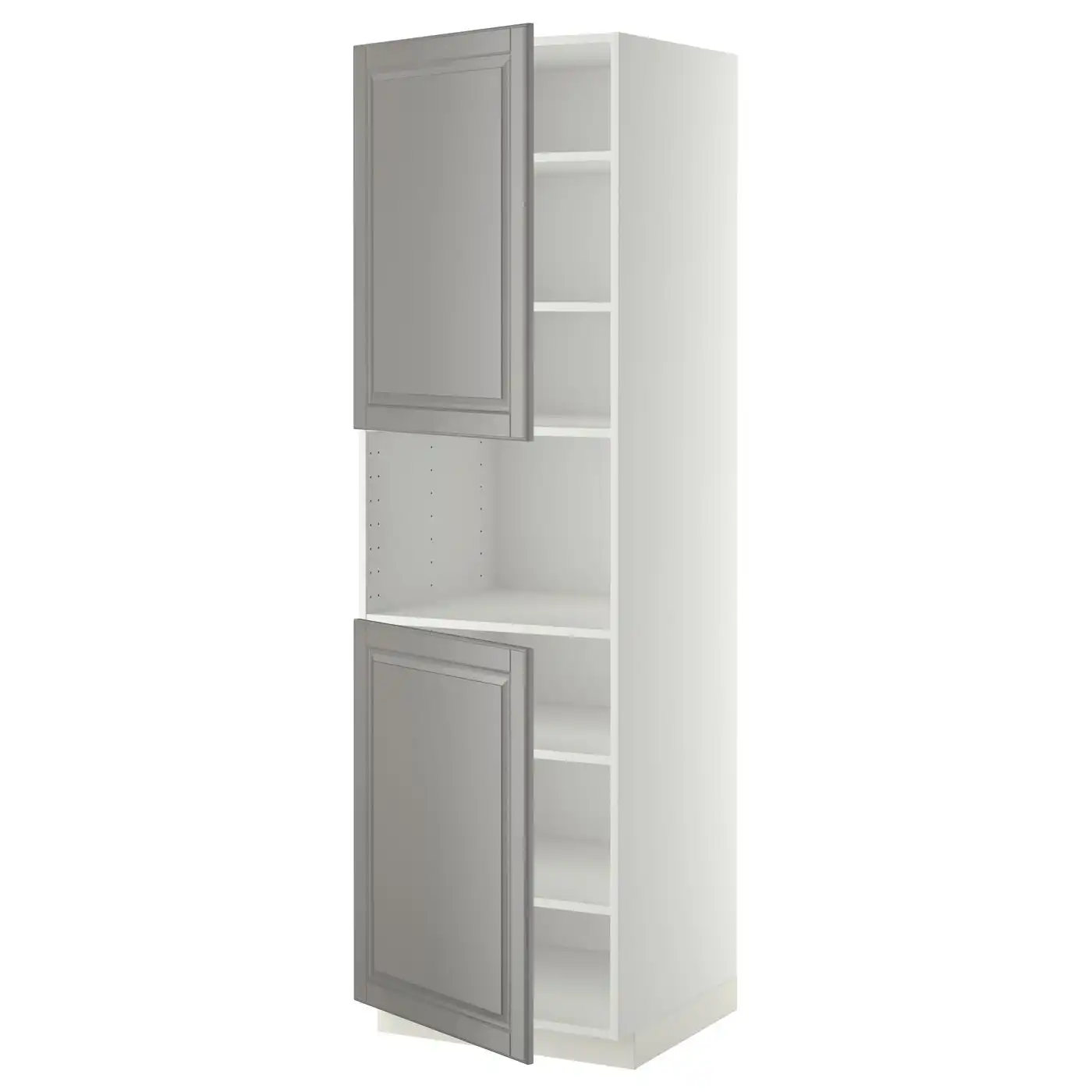 METOD High cab f micro w 2 doors/shelves - white/Bodbyn grey 60x60x200 cm