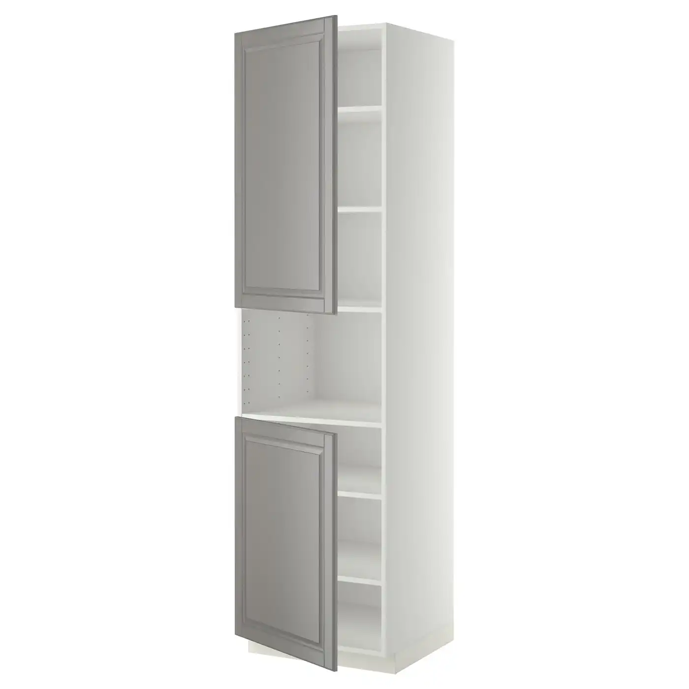 METOD High cab f micro w 2 doors/shelves - white/Bodbyn grey 60x60x220 cm