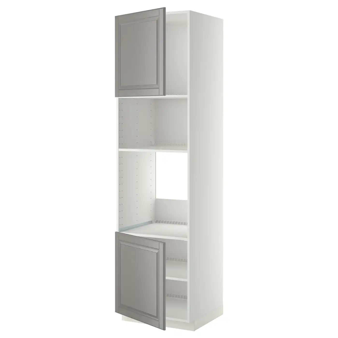 METOD Hi cb f oven/micro w 2 drs/shelves - white/Bodbyn grey 60x60x220 cm