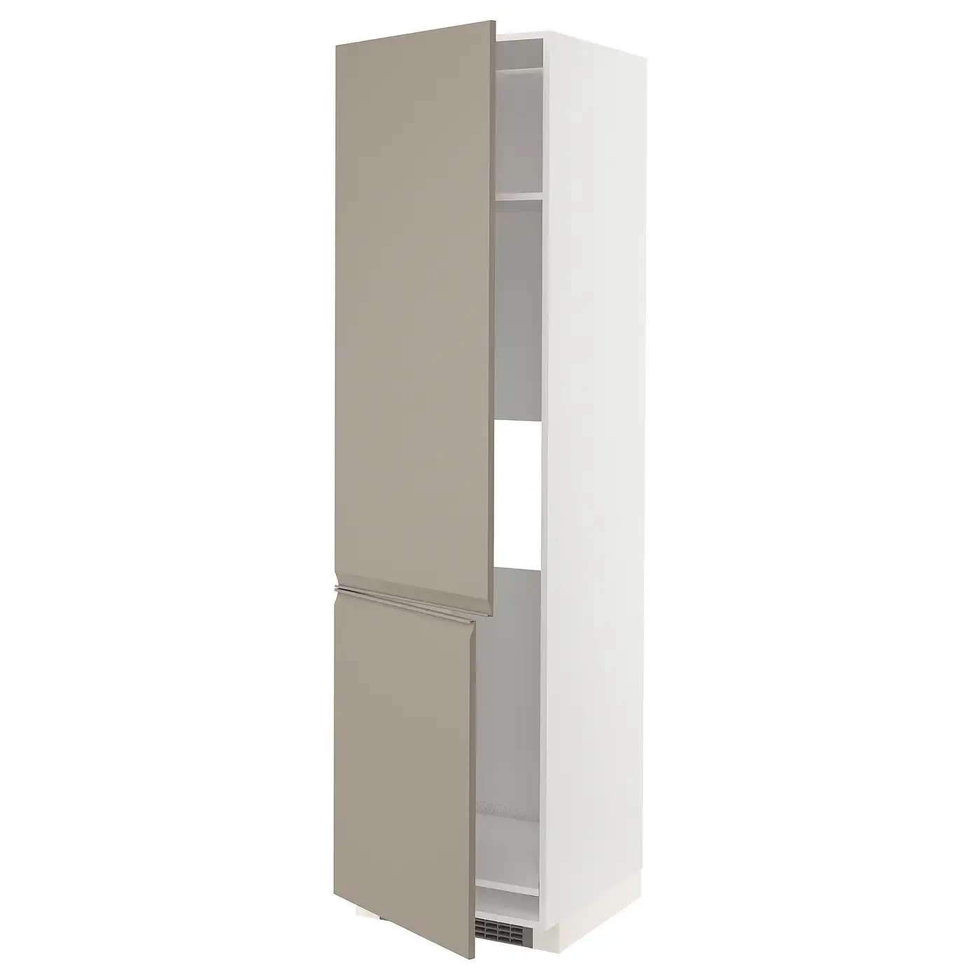 METOD High cabinet for fridge w 2 doors - white/Upplöv matt dark beige 60x60x220 cm