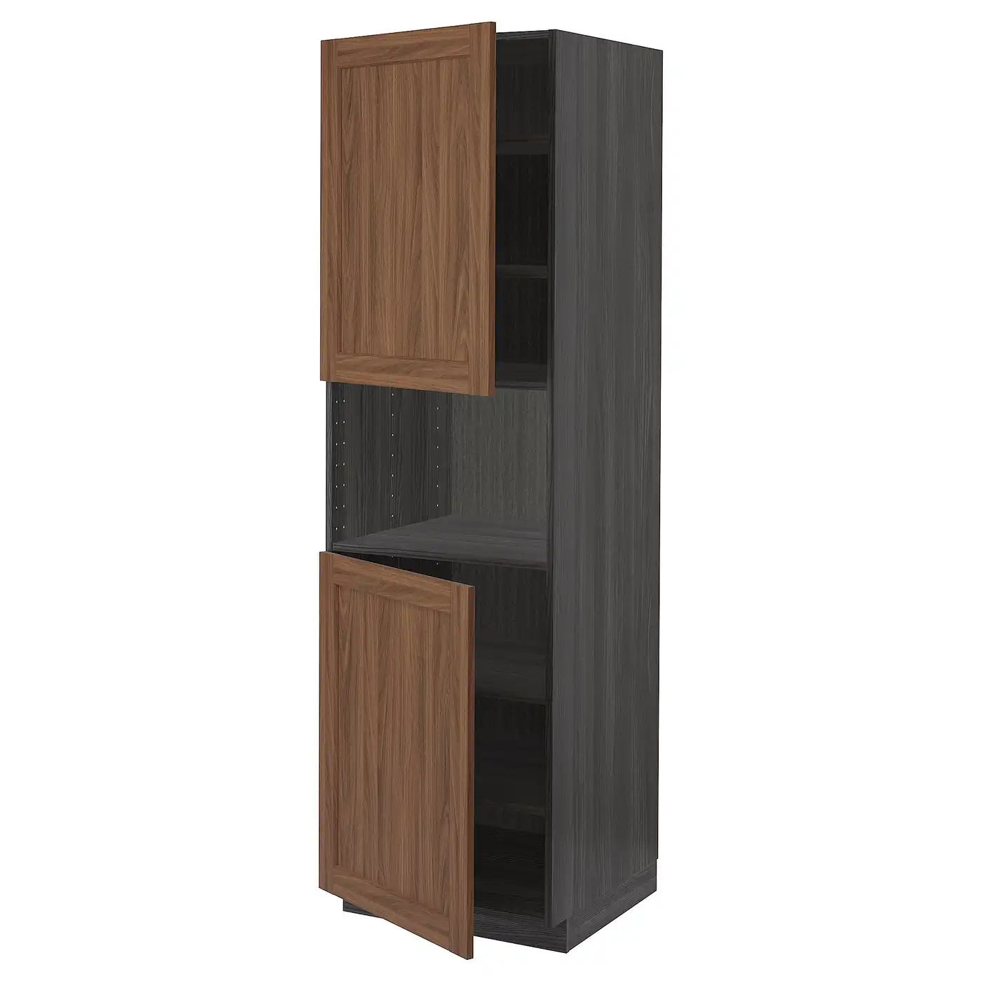 METOD High cab f micro w 2 doors/shelves - black Enköping/brown walnut effect 60x60x200 cm