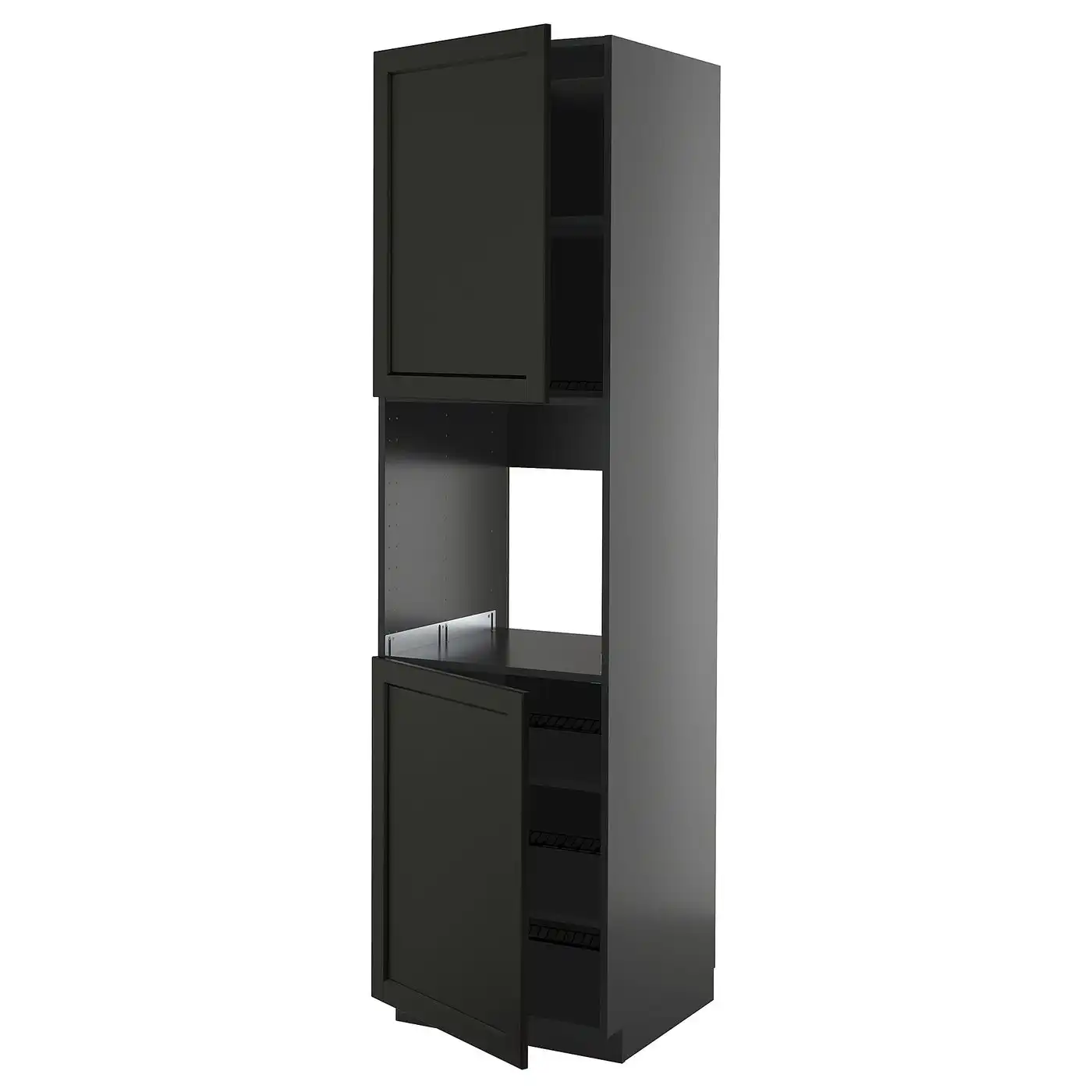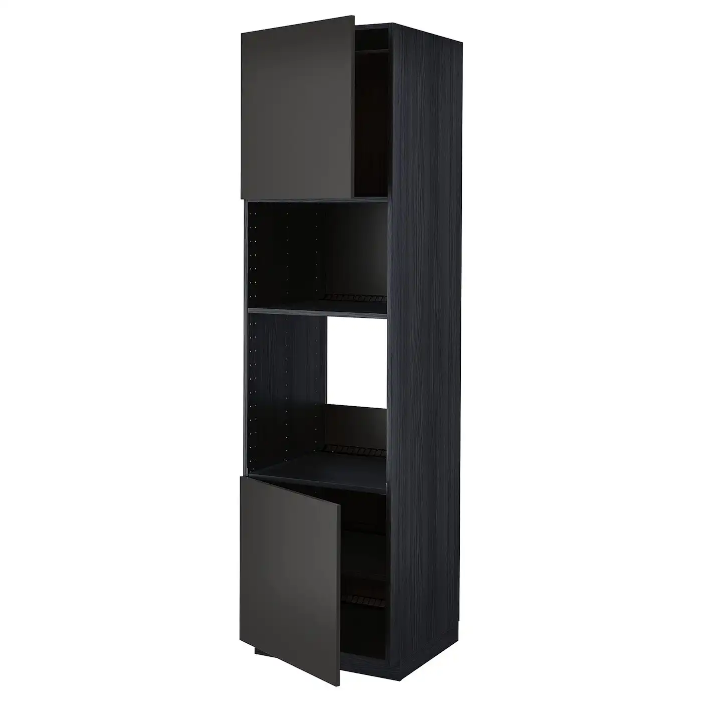METOD Hi cb f oven/micro w 2 drs/shelves - black/Nickebo matt anthracite 60x60x220 cm