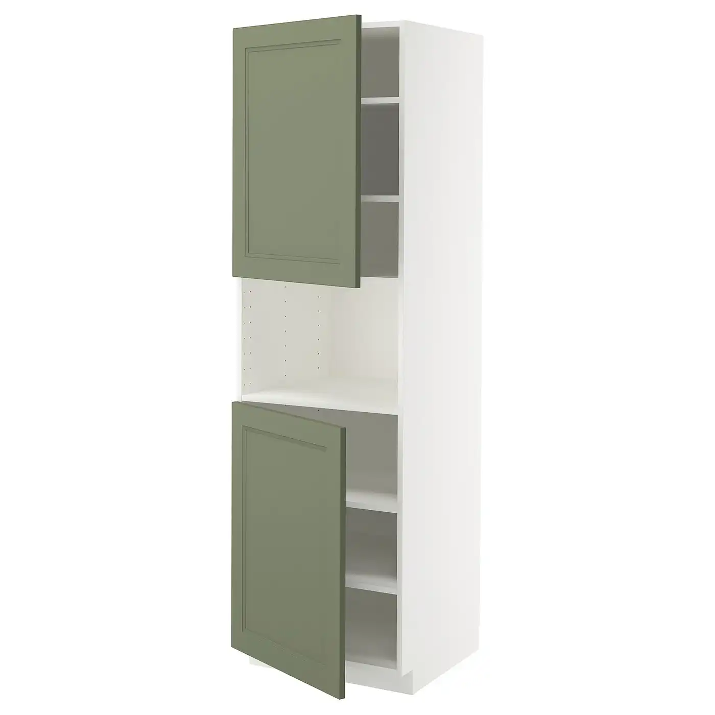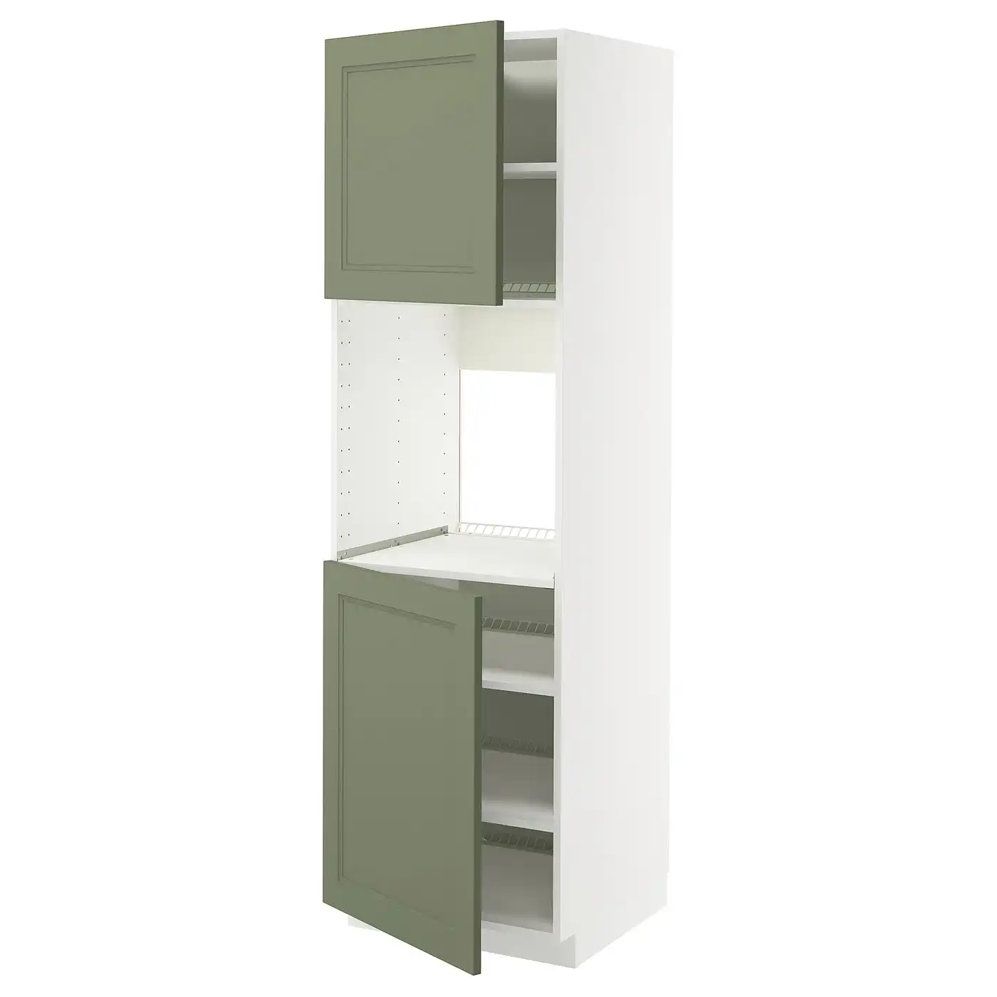 METOD High cab f oven w 2 doors/shelves - white/Axstad grey-green 60x60x200 cm