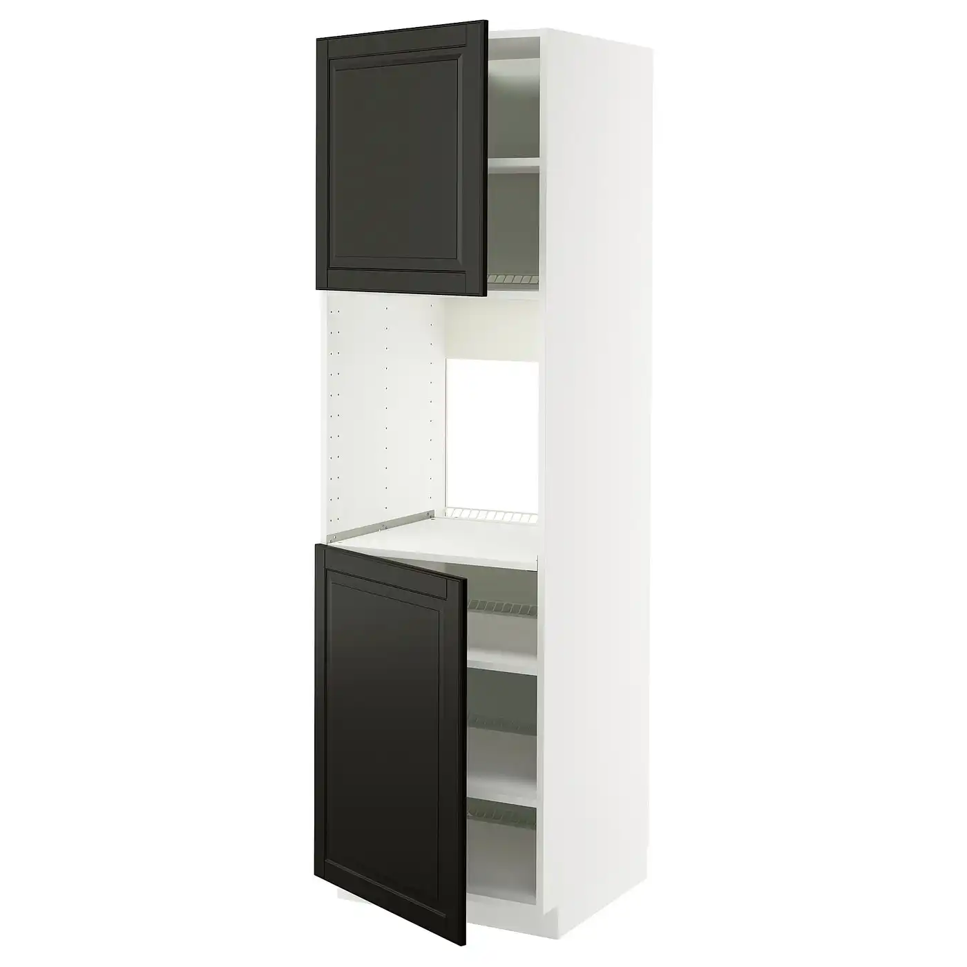 METOD High cab f oven w 2 doors/shelves - white/Bodbyn black 60x60x200 cm