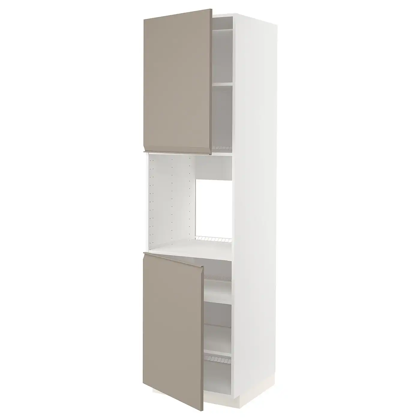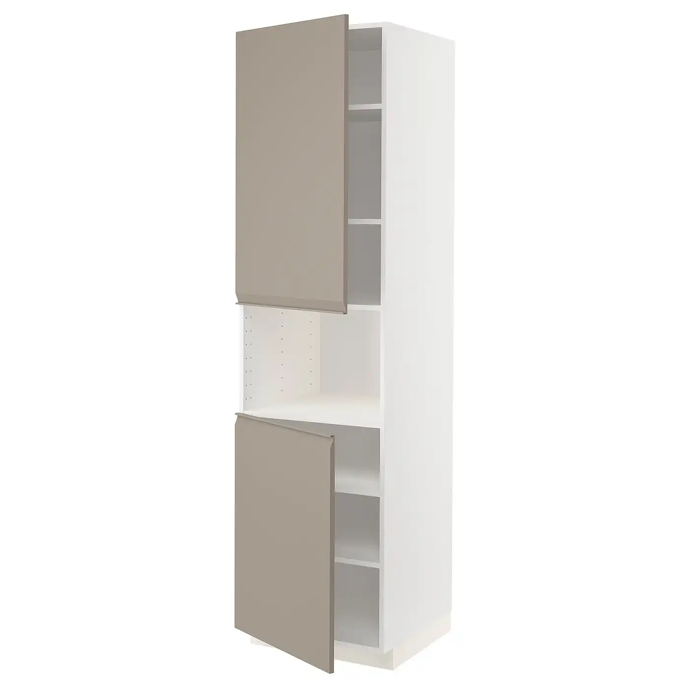 METOD High cab f micro w 2 doors/shelves - white/Upplöv matt dark beige 60x60x220 cm