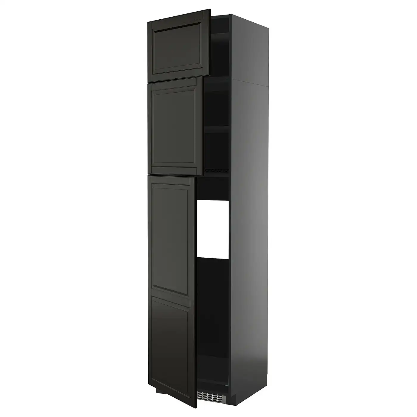 IKEA METOD High cabinet for fridge with 3 doors 60x60x240 cm black-grey/BODBYN black