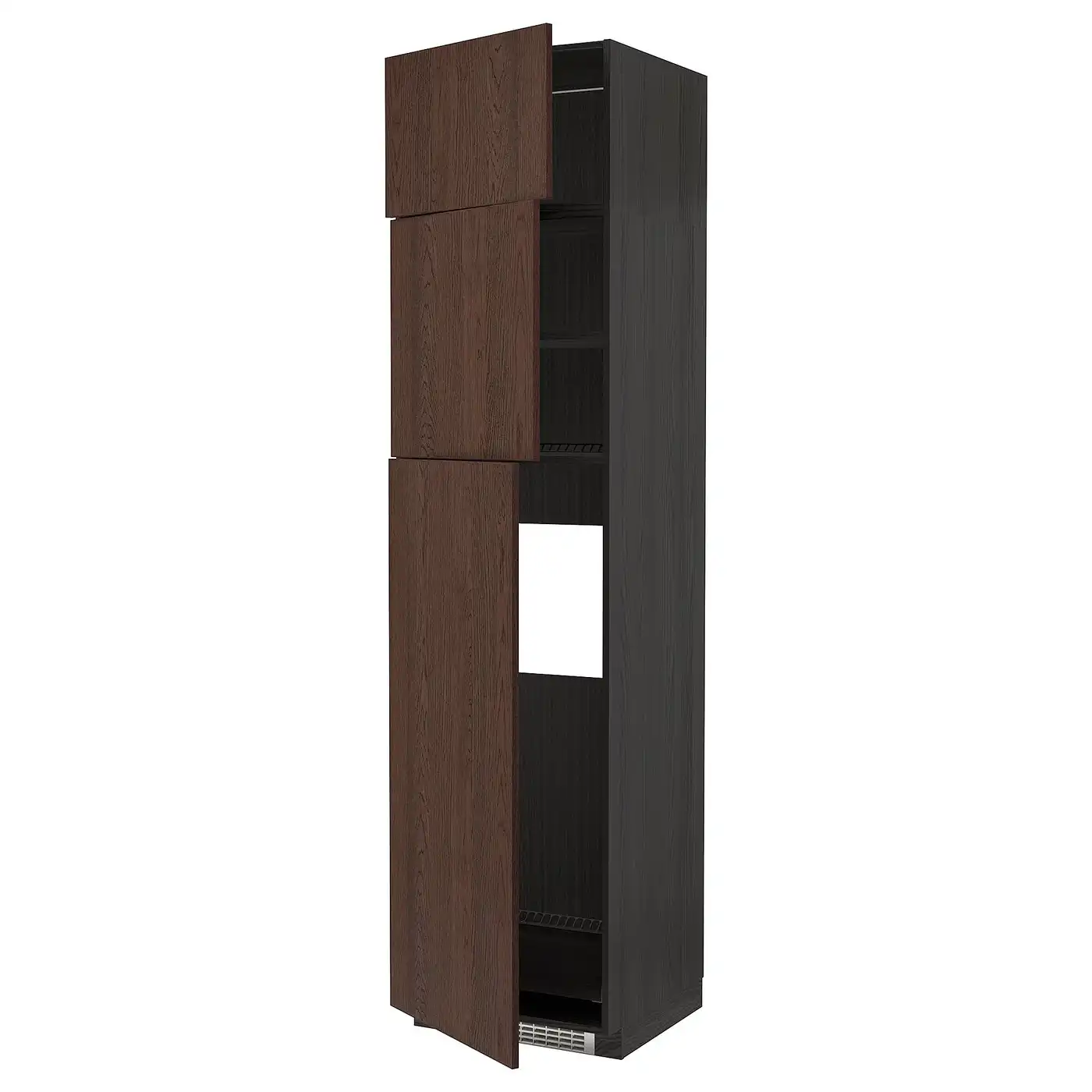 METOD High cab for fridge with 3 doors - black-grey/Sinarp brown 60x60x240 cm