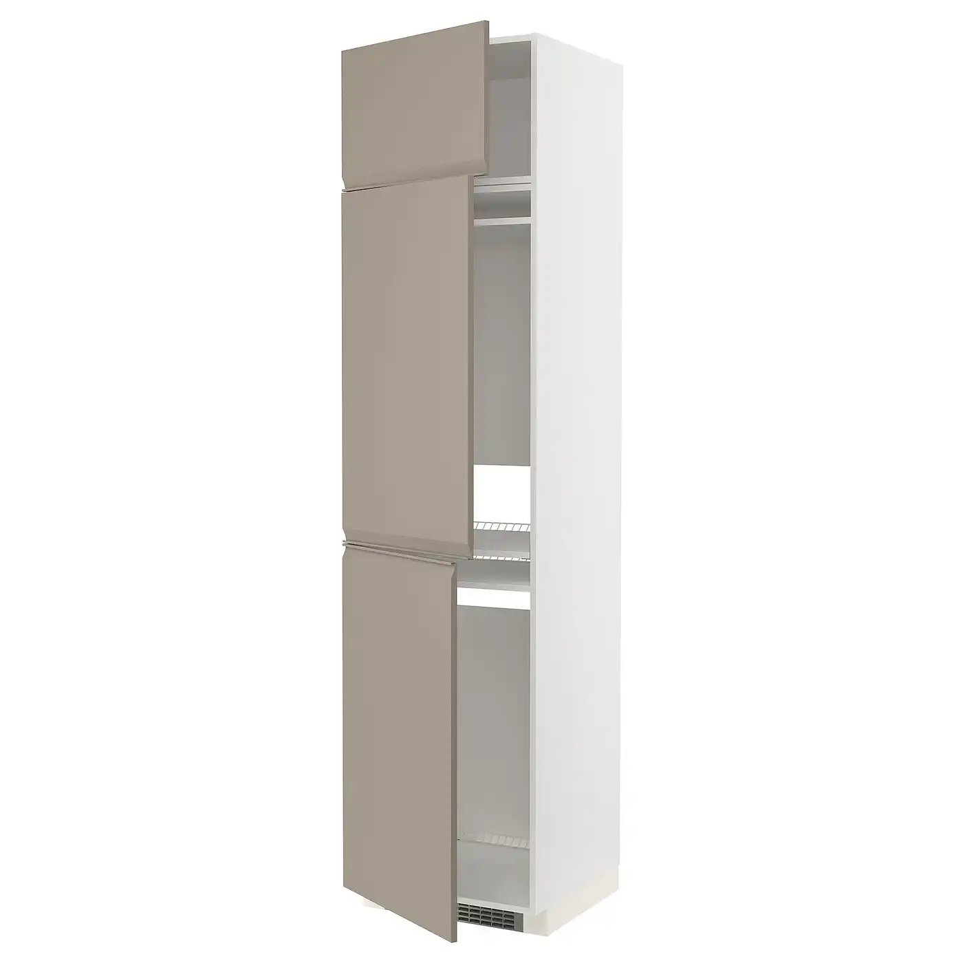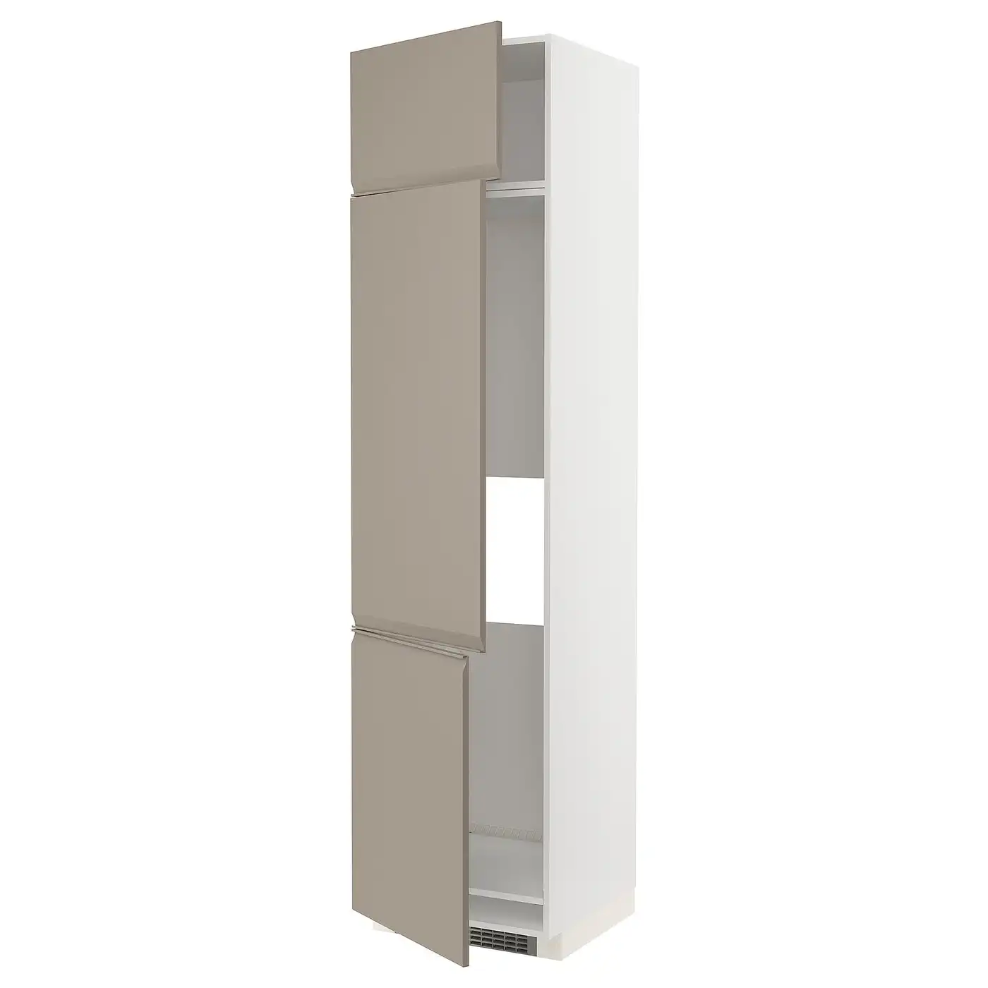 METOD High cab for fridge with 3 doors - white/Upplöv matt dark beige 60x60x240 cm