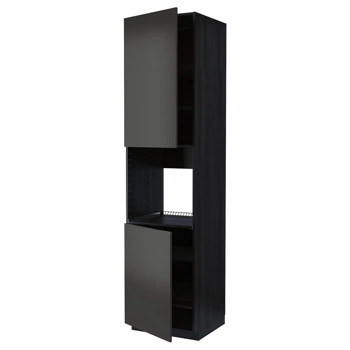 METOD High cab f oven w 2 doors/shelves - black/Nickebo matt anthracite 60x60x240 cm