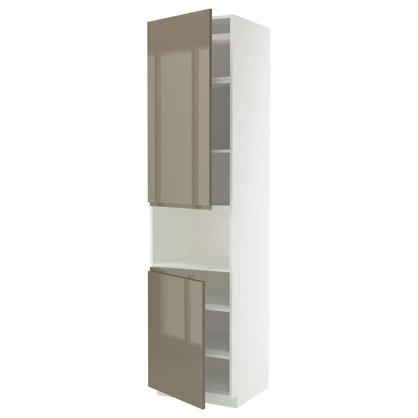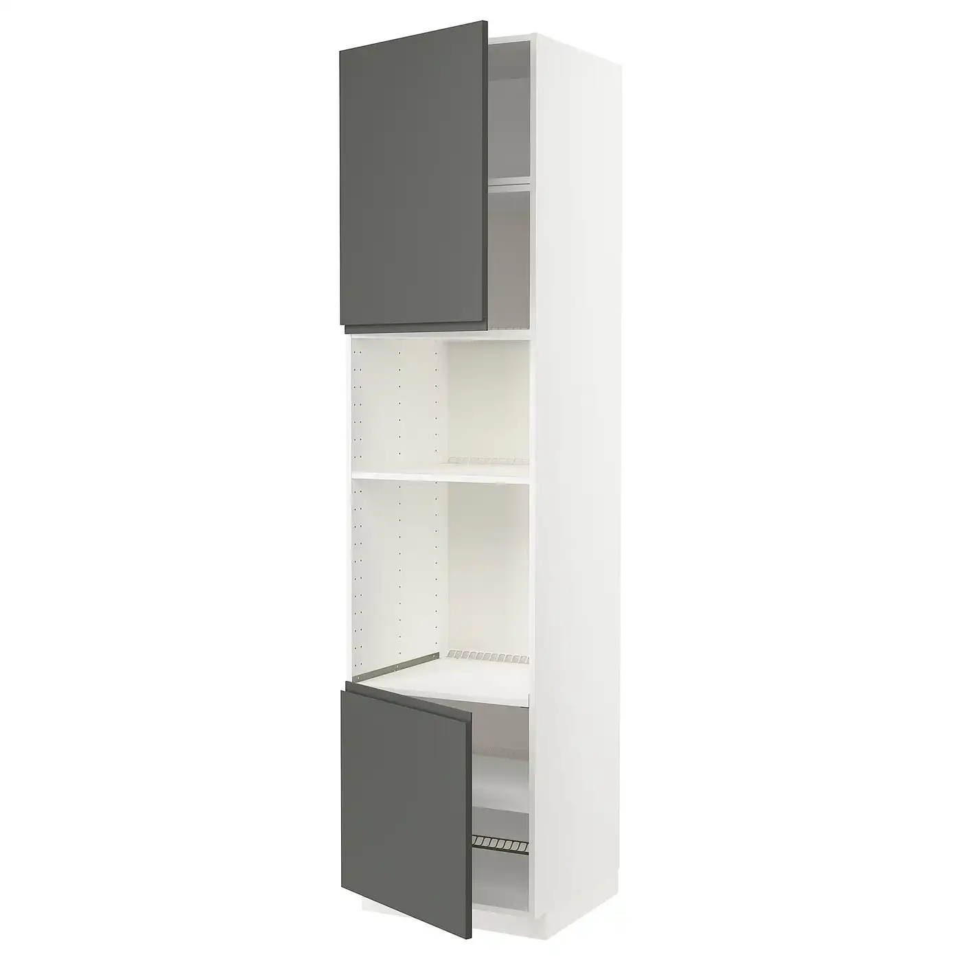 METOD High cab f micro w 2 doors/shelves - white/Voxtorp high-gloss dark grey-brown 60x60x240 cm
