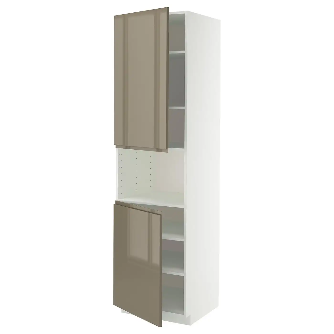 METOD High cab f micro w 2 doors/shelves - white/Voxtorp high-gloss dark grey-brown 60x60x220 cm