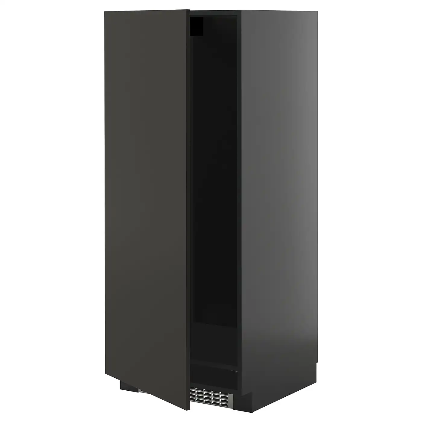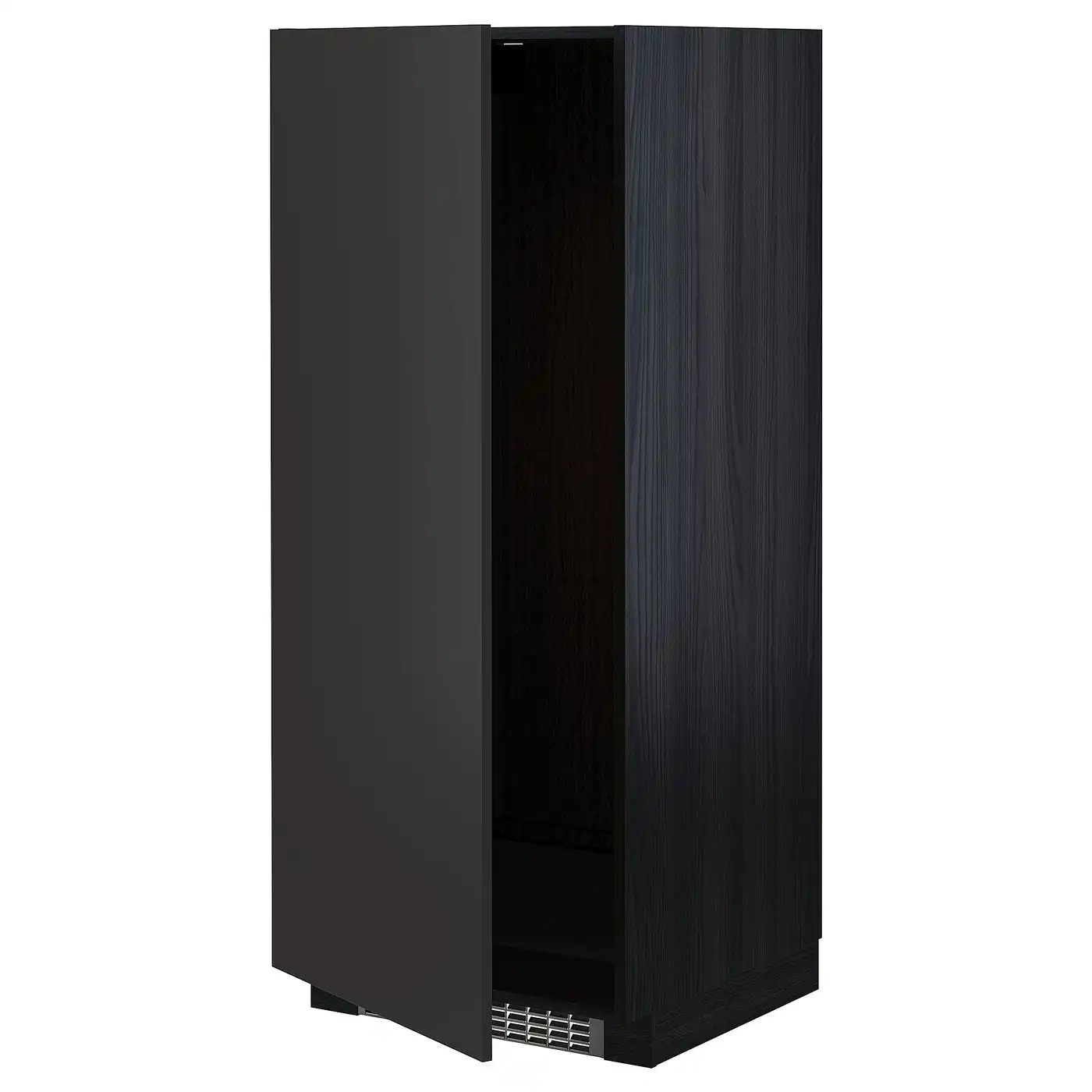 METOD High cabinet for fridge/freezer - black-grey/Nickebo matt anthracite 60x60x140 cm