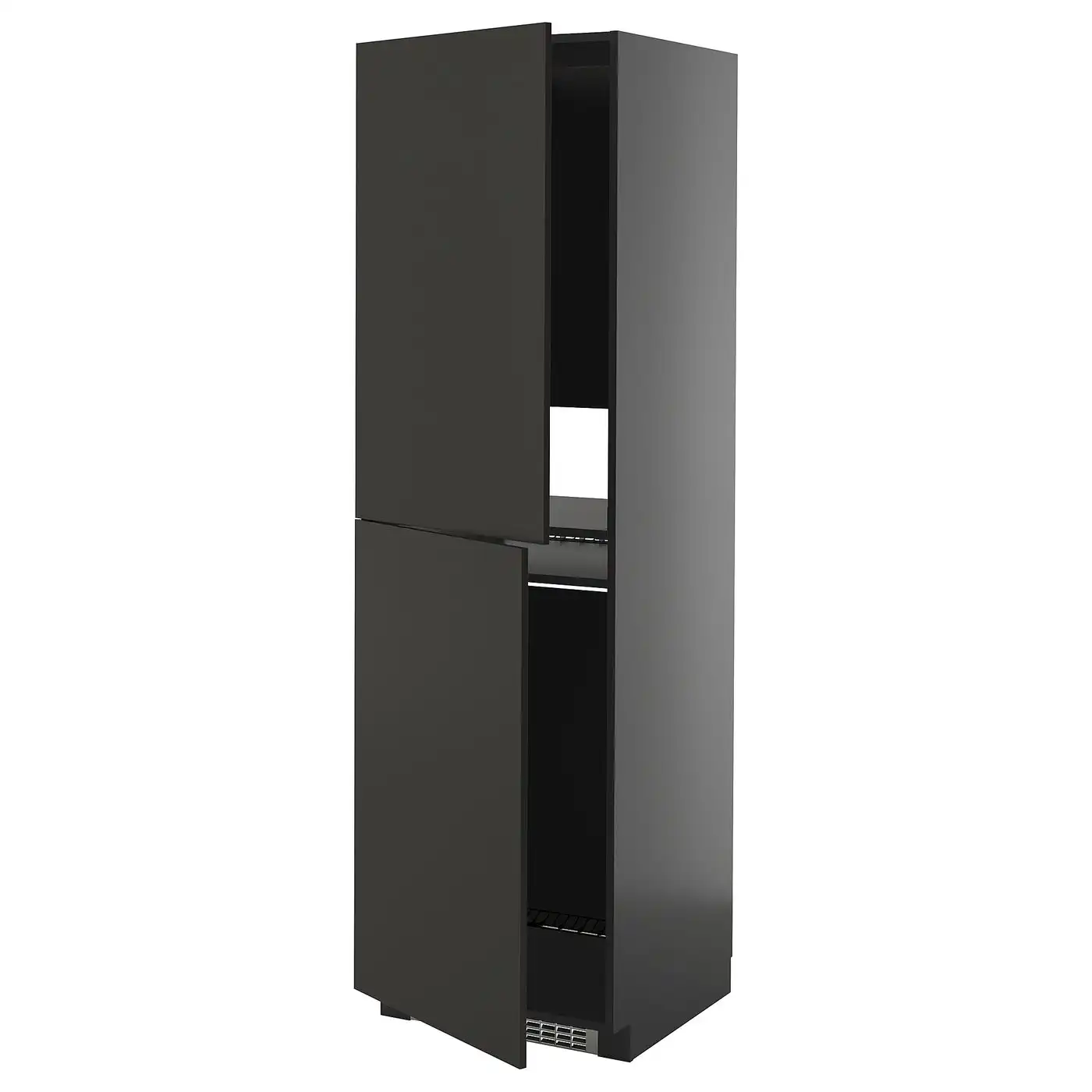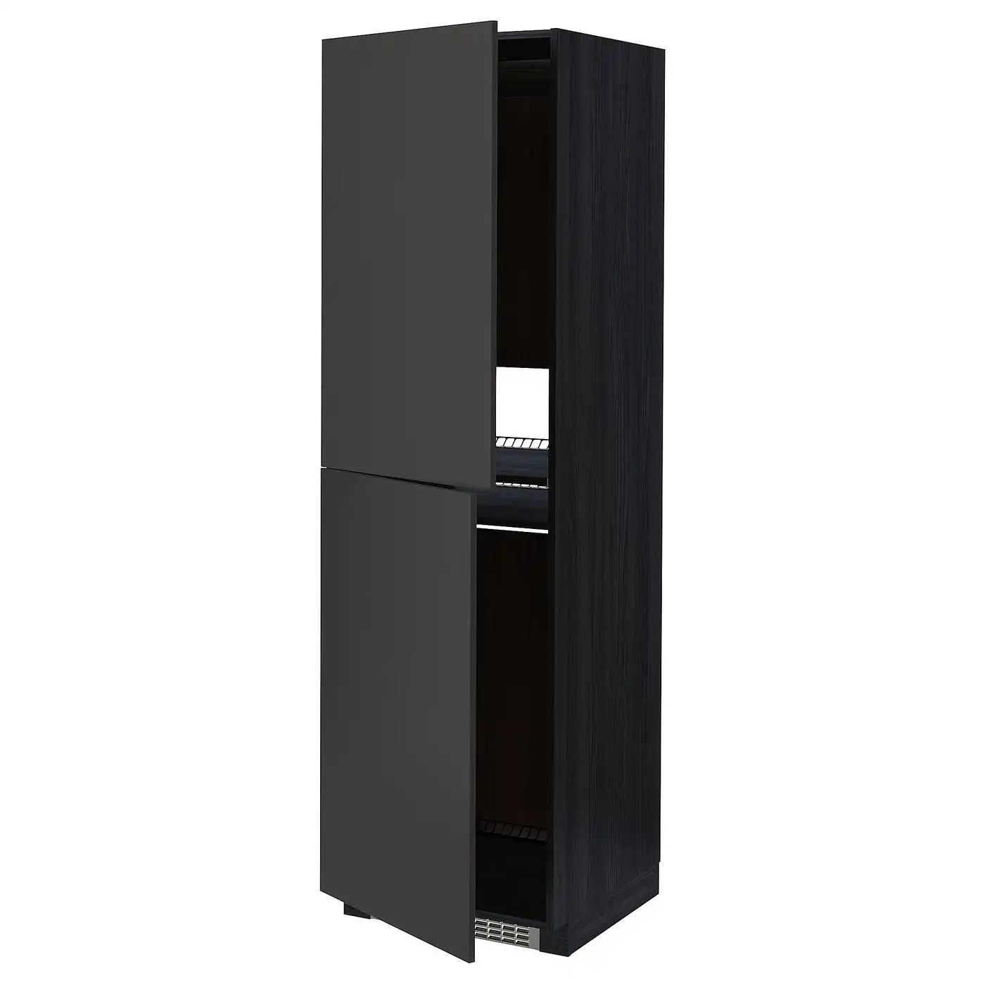 METOD High cabinet for fridge/freezer - black/Nickebo matt anthracite 60x60x200 cm