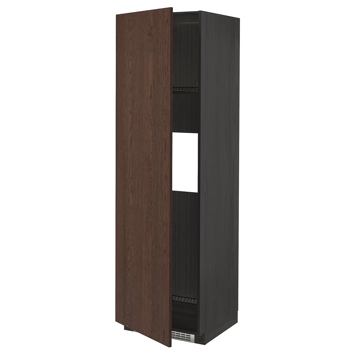 METOD High cab f fridge or freezer w door - black-grey/Sinarp brown 60x60x200 cm