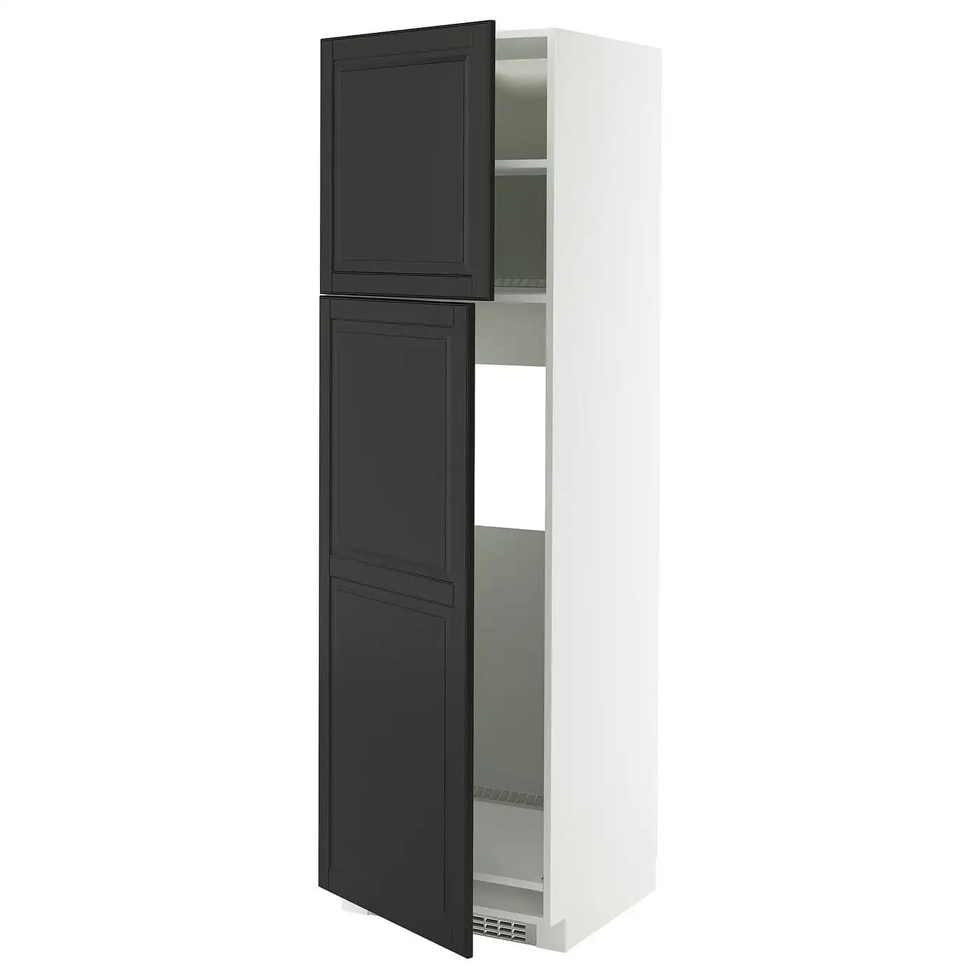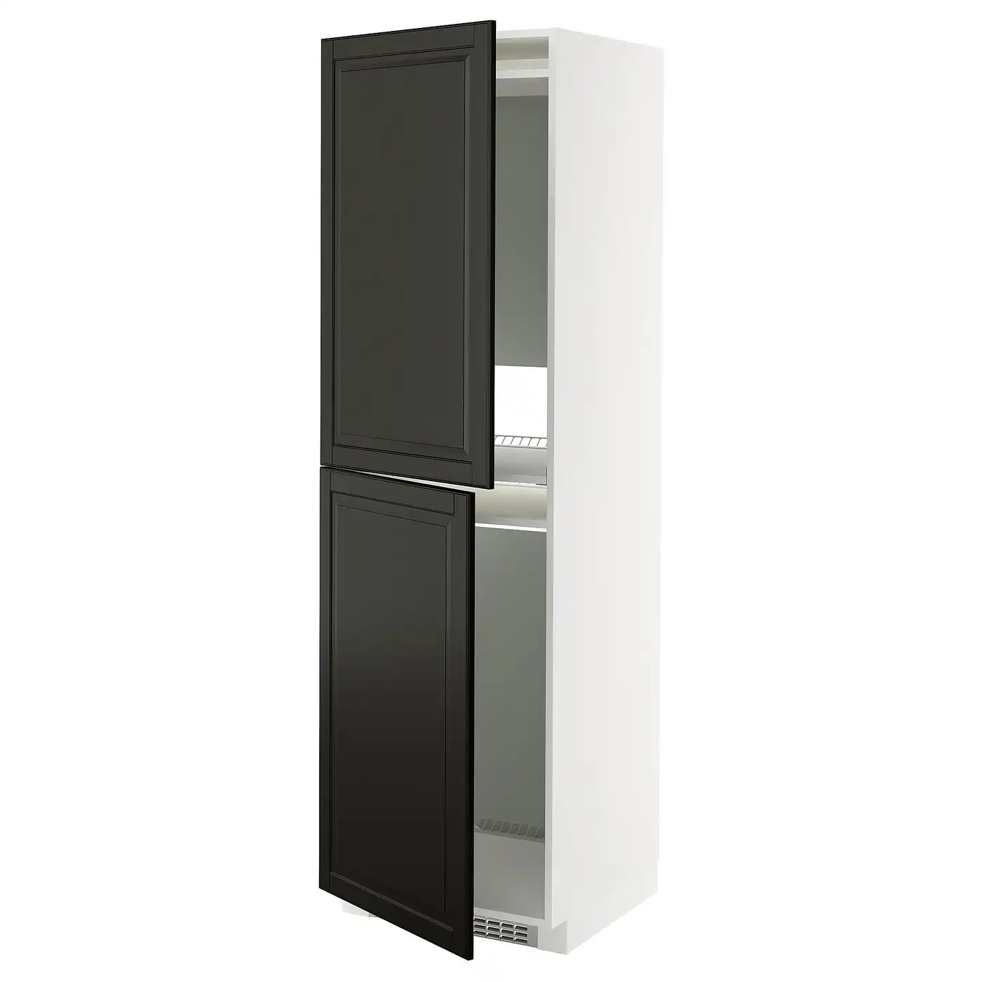 METOD High cabinet for fridge w 2 doors - white/Bodbyn black 60x60x200 cm