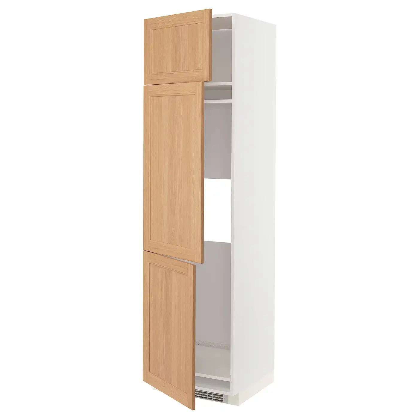 METOD High cabinet for fridge/freezer - white/Vedhamn oak 60x60x220 cm