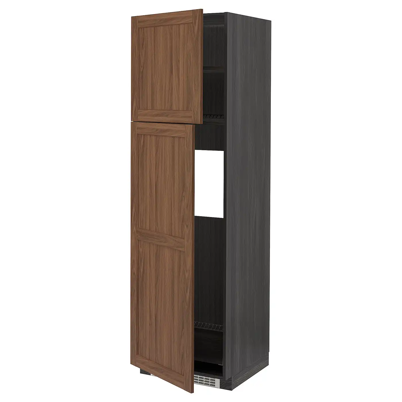 METOD High cabinet for fridge w 2 doors - black Enköping/brown walnut effect 60x60x200 cm