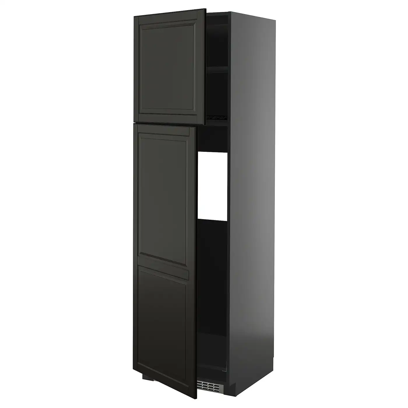 IKEA METOD High cabinet for fridge with 2 doors 60x60x200 cm black-grey/BODBYN black
