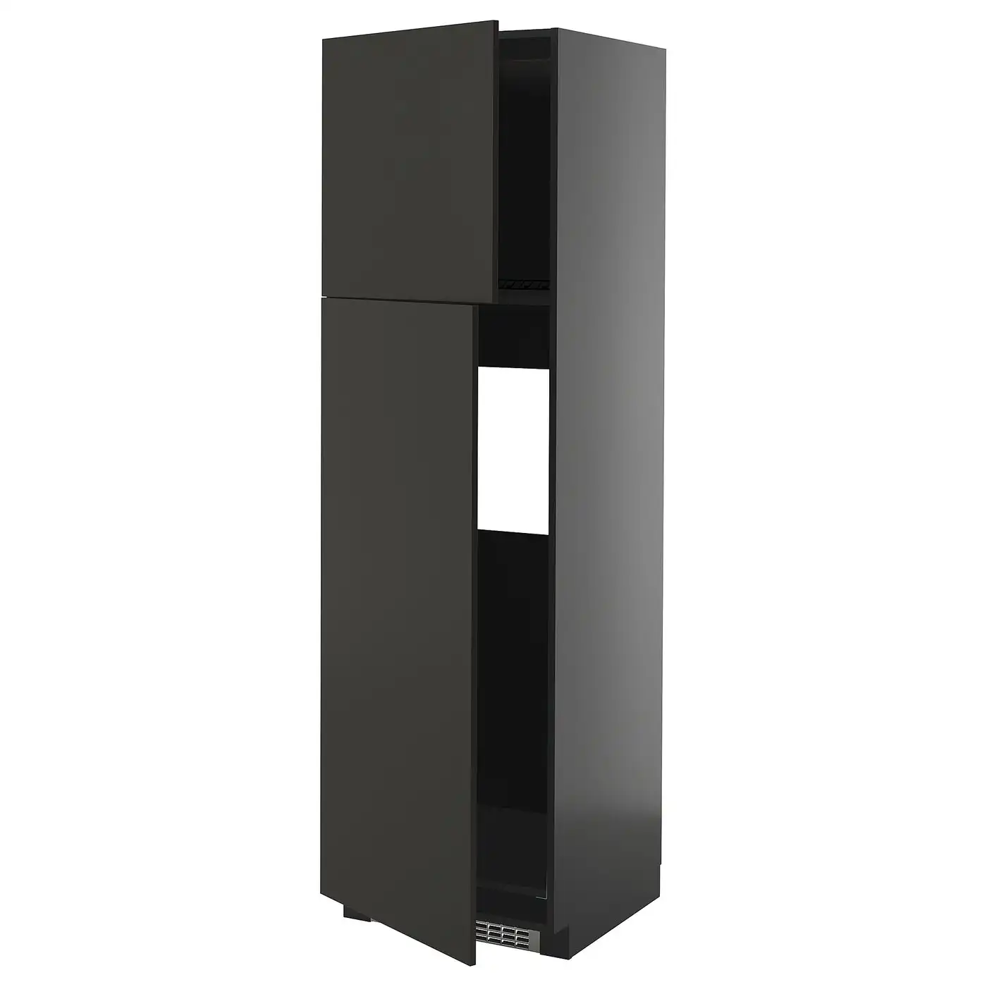 METOD High cabinet for fridge w 2 doors - black-grey/Nickebo matt anthracite 60x60x200 cm