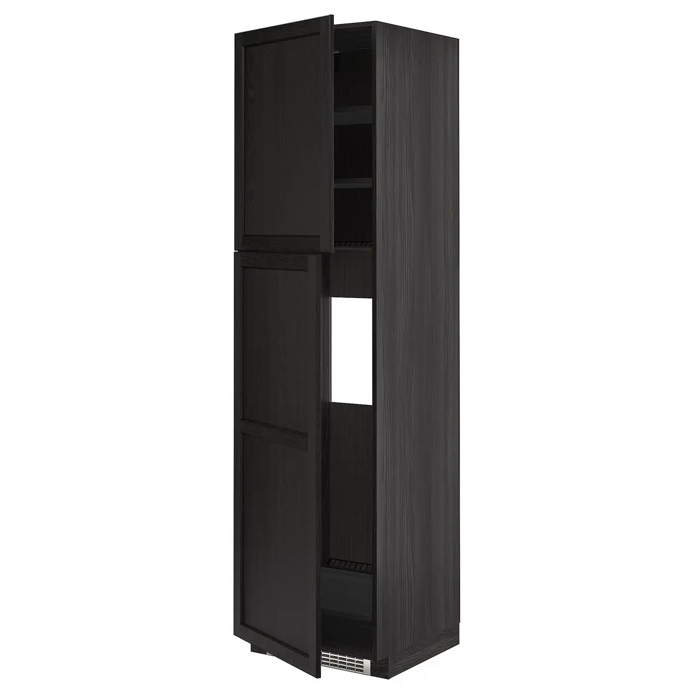 IKEA METOD High cabinet for fridge with 2 doors 60x60x220 cm black/LERHYTTAN black stained