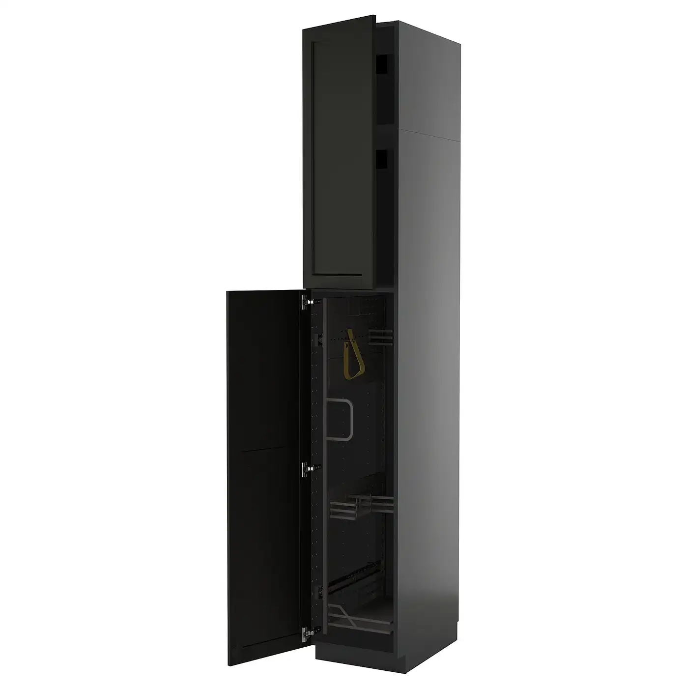 IKEA METOD High cabinet with cleaning interior 40x60x240 cm black-grey/LERHYTTAN black stained