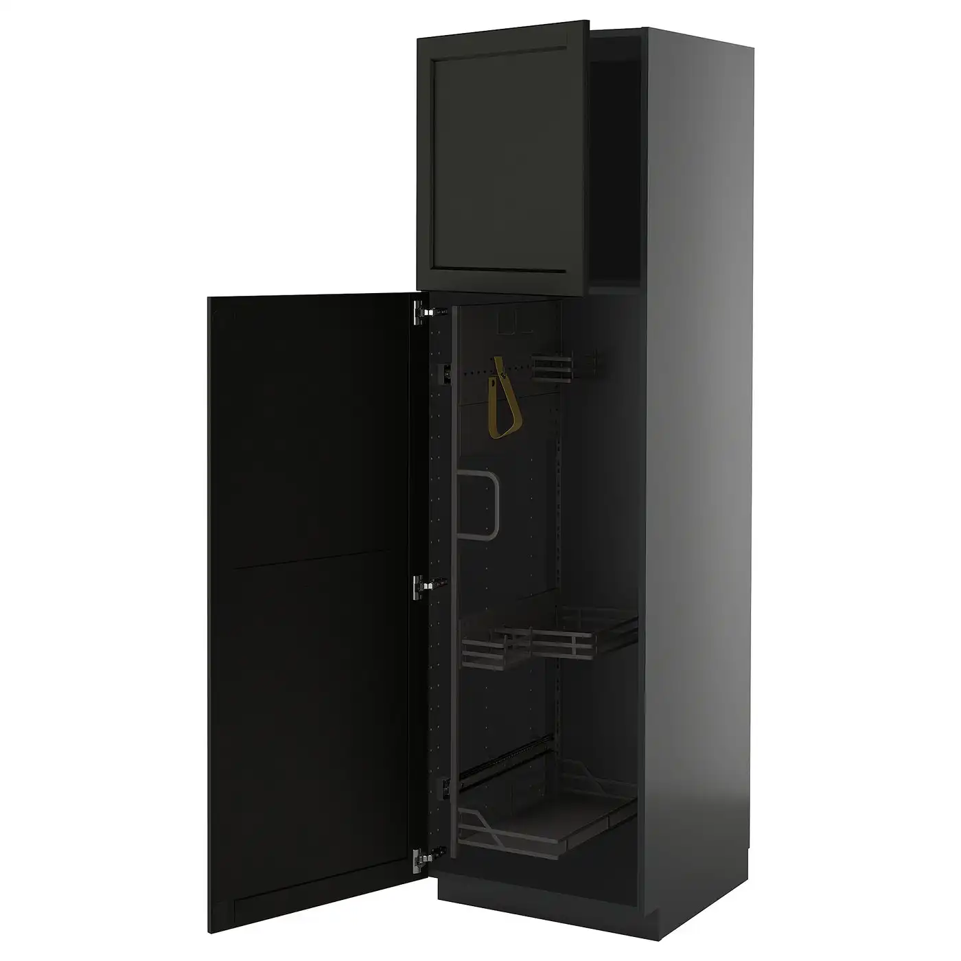 IKEA METOD High cabinet with cleaning interior 60x60x200 cm black-grey/LERHYTTAN black stained