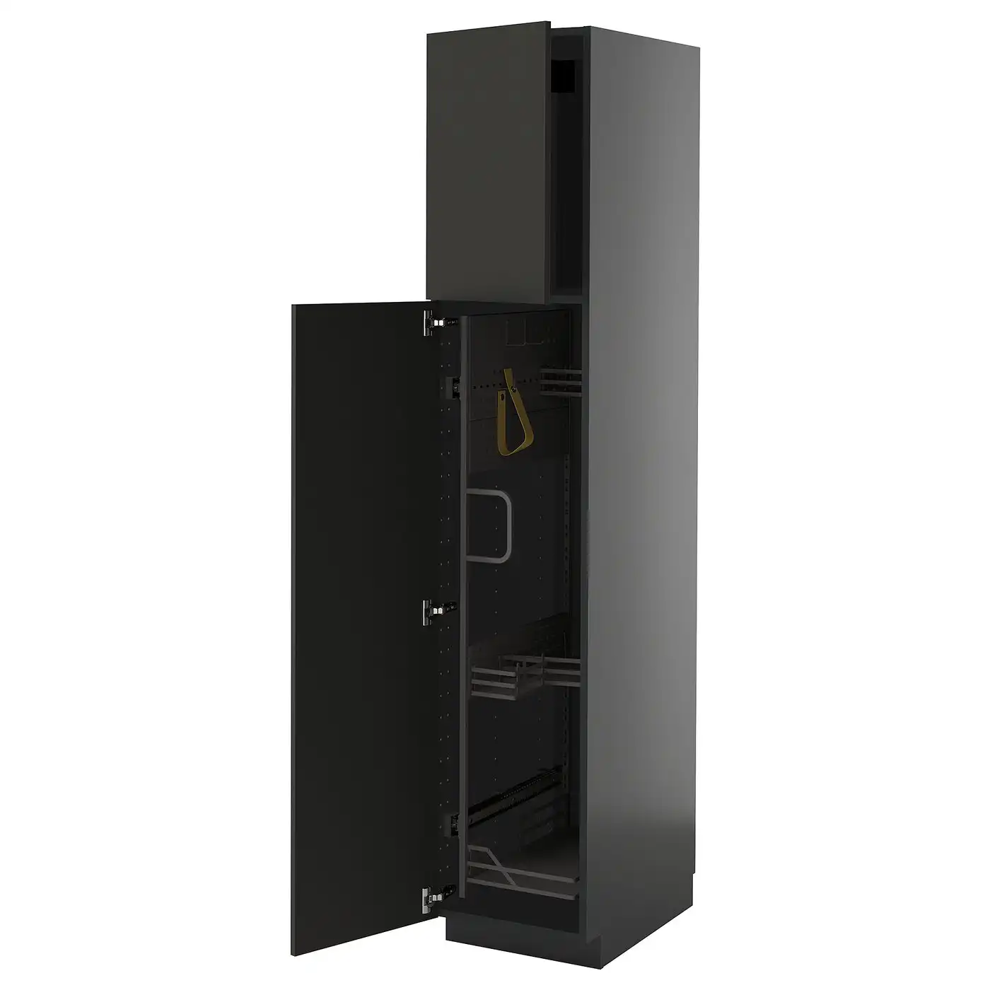 METOD High cabinet with cleaning interior - black-grey/Nickebo matt anthracite 40x60x200 cm