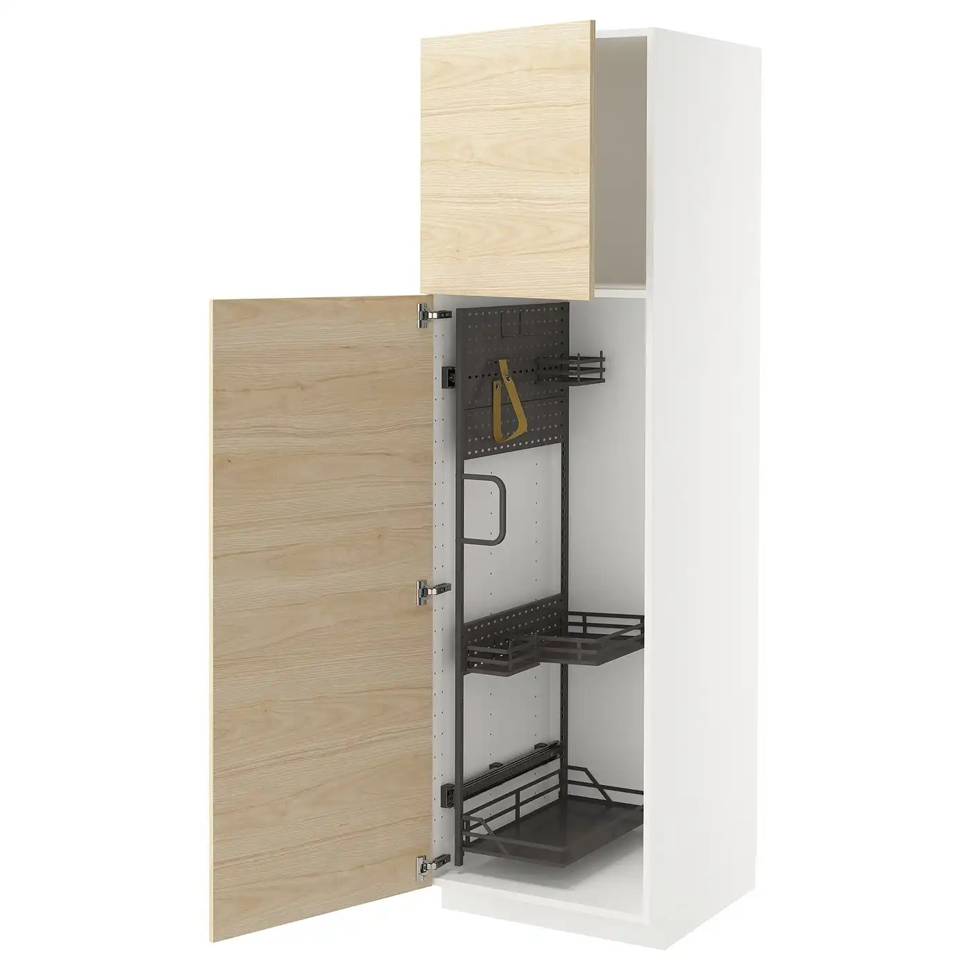 METOD High cabinet with cleaning interior - white/Askersund light ash effect 60x60x200 cm