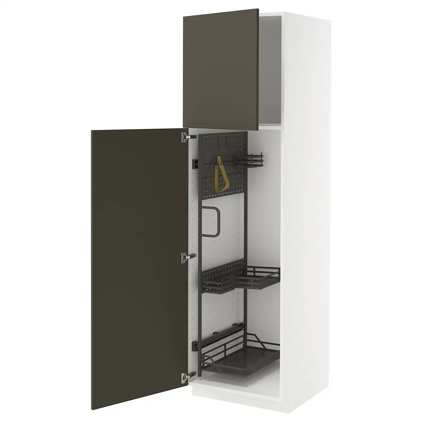 METOD High cabinet with cleaning interior - white/Sinarp brown 60x60x200 cm