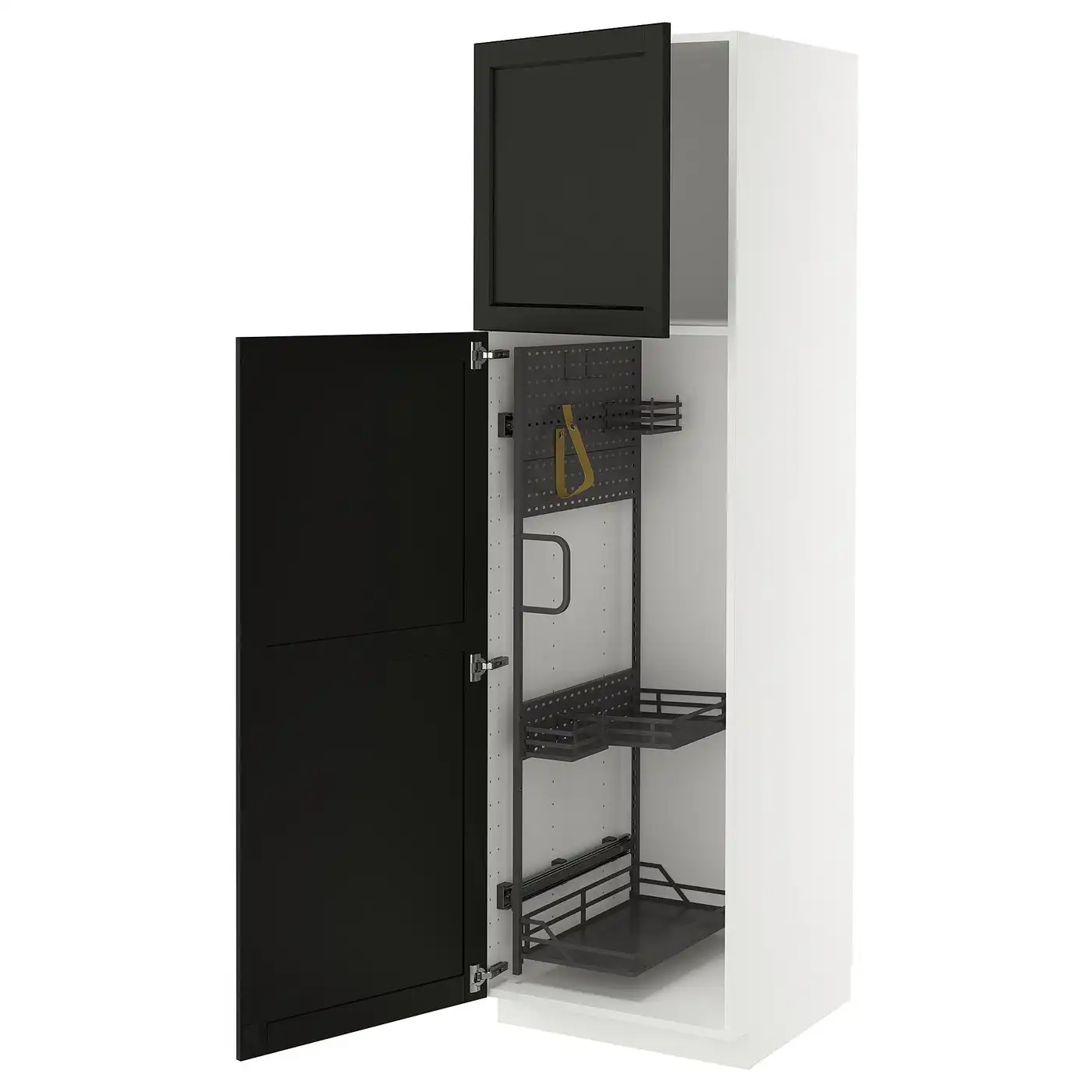 METOD High cabinet with cleaning interior - white/Lerhyttan black stained 60x60x200 cm