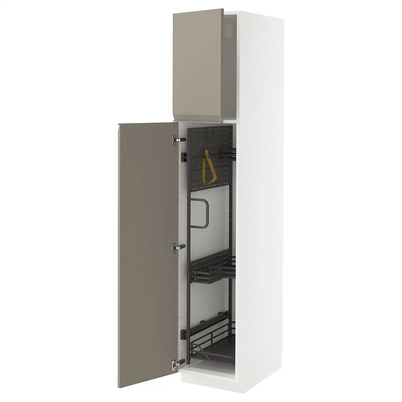 IKEA METOD High cabinet with cleaning interior 40x60x200 cm white/UPPLÖV Matt dark beige