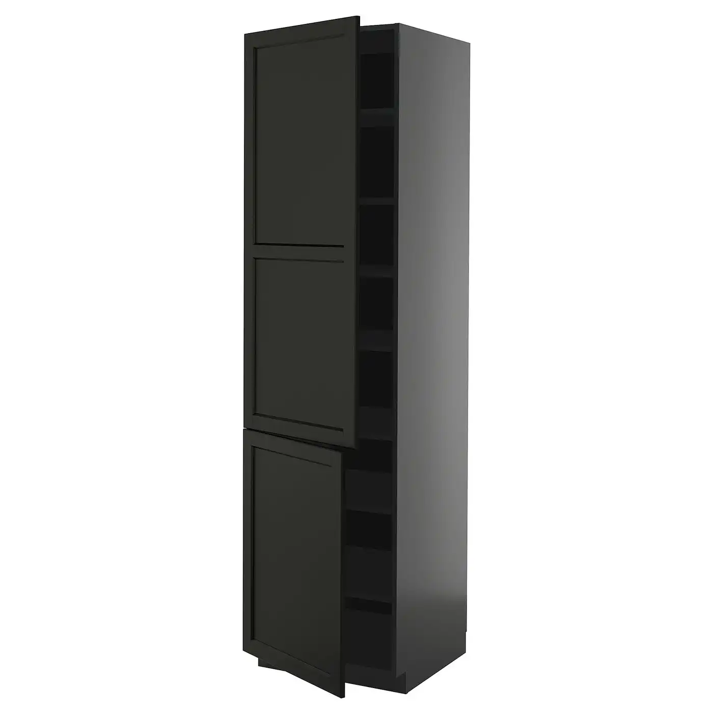 IKEA METOD High cabinet with shelves and 2 doors 60x60x220 cm black-grey/LERHYTTAN black stained