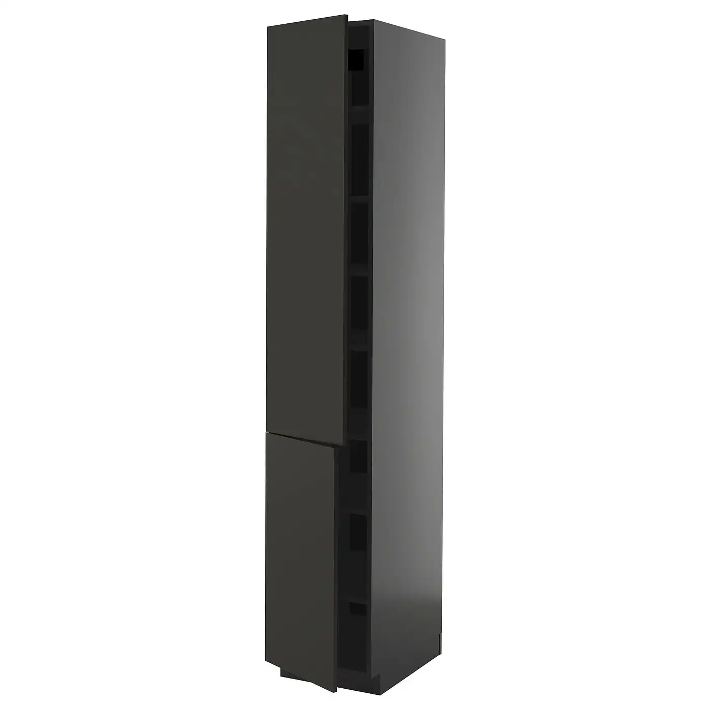 METOD High cabinet with shelves/2 doors - black-grey/Nickebo matt anthracite 40x60x220 cm