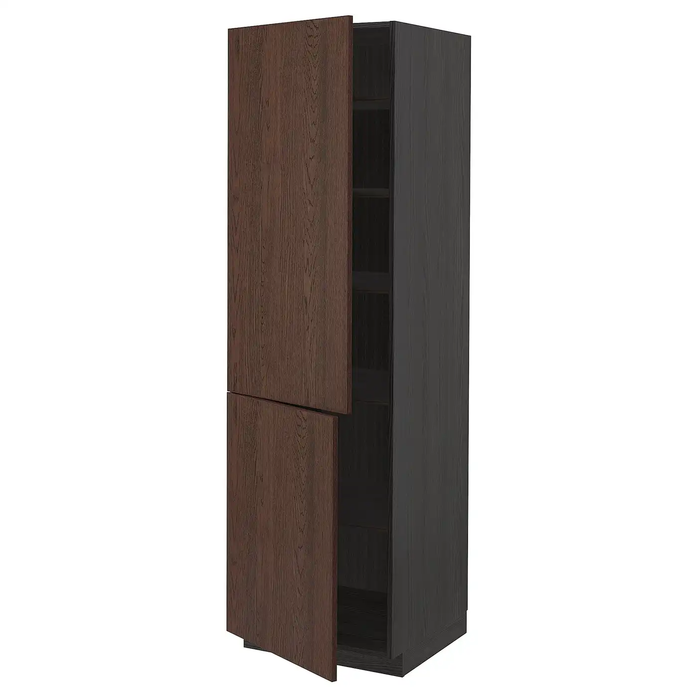 METOD High cabinet with shelves/2 doors - black/Sinarp brown 60x60x200 cm