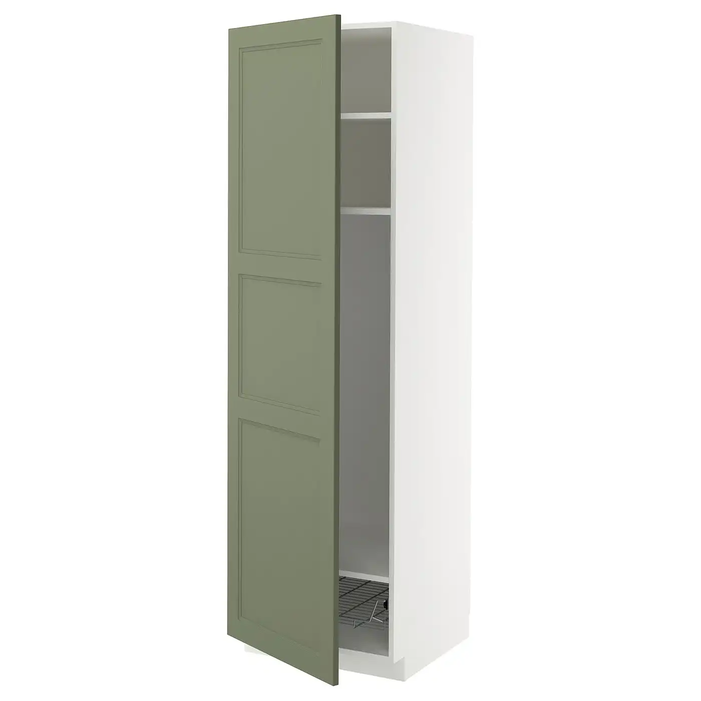 METOD High cabinet w shelves/wire basket - white/Axstad grey-green 60x60x200 cm
