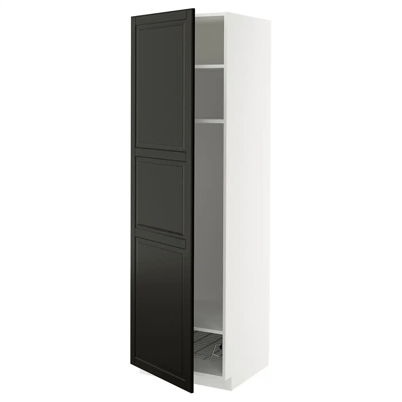 METOD High cabinet w shelves/wire basket - white/Bodbyn black 60x60x200 cm