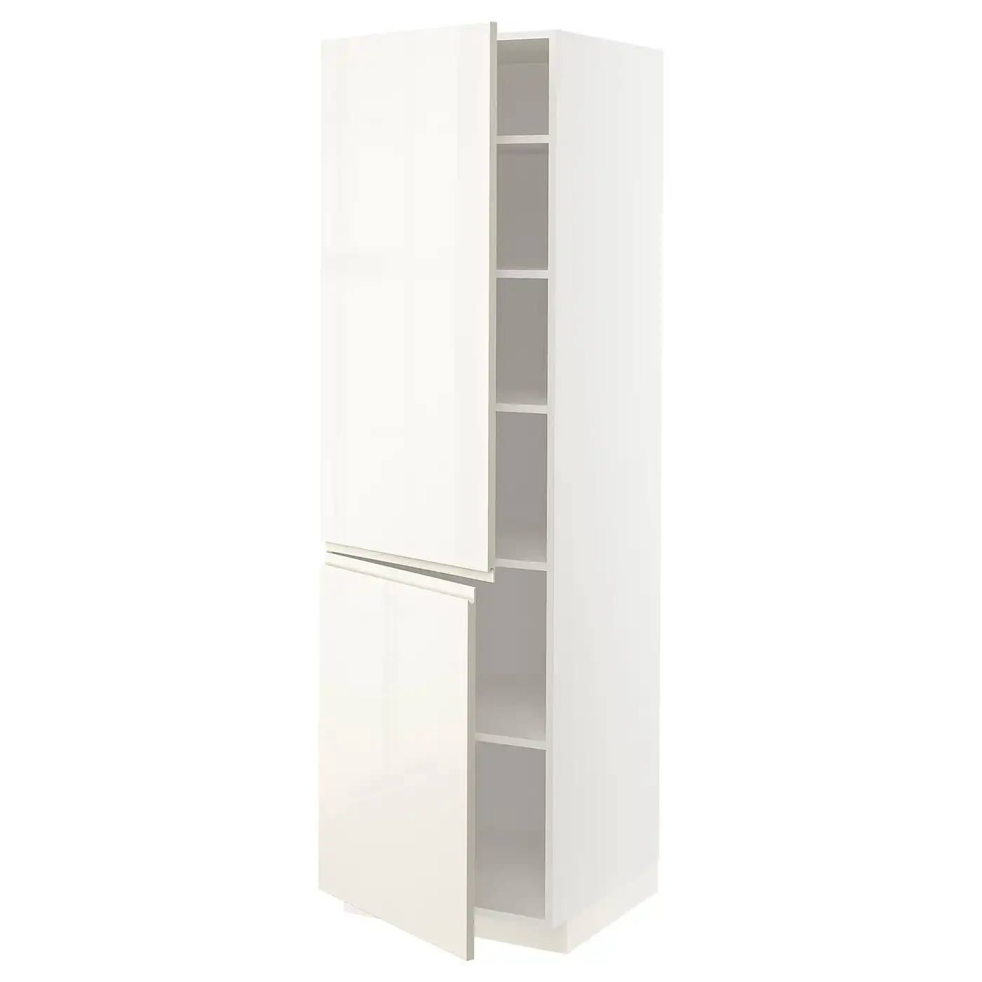 METOD High cabinet with shelves/2 doors - white/Voxtorp high-gloss light beige 60x60x200 cm — Price History & Tracker | DeserTracker